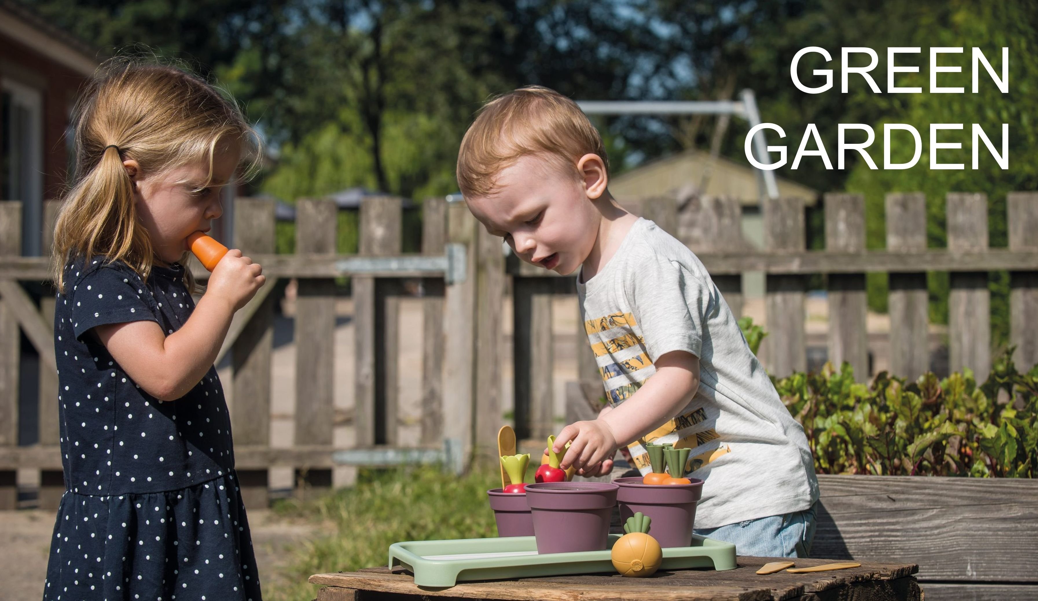 Kolekce hraček řady Green Garden obsahuje zábavné sady se zeleninou, jídlem na hraní a pracovním nářadím pro péči o vaši zahrádku. Hrací sety v krásných, jemných barvách zvou k zábavným chvilkám během grilování či popíjení čaje s kamarády. Pro aktivnější kutily nabízíme sekačky na trávu nebo zahradní kolečka.