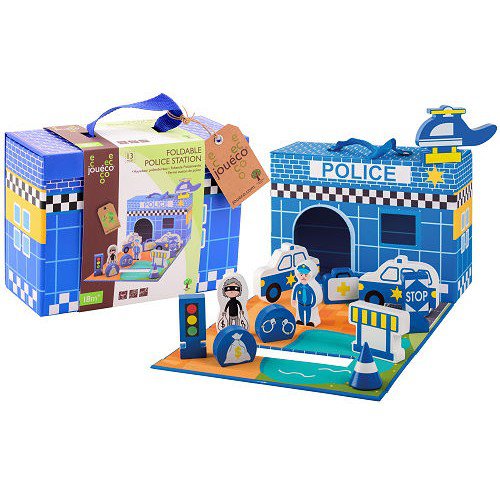 Balení obsahuje 1 kufřík + 12 dřevěných figurek z policejní stanice.