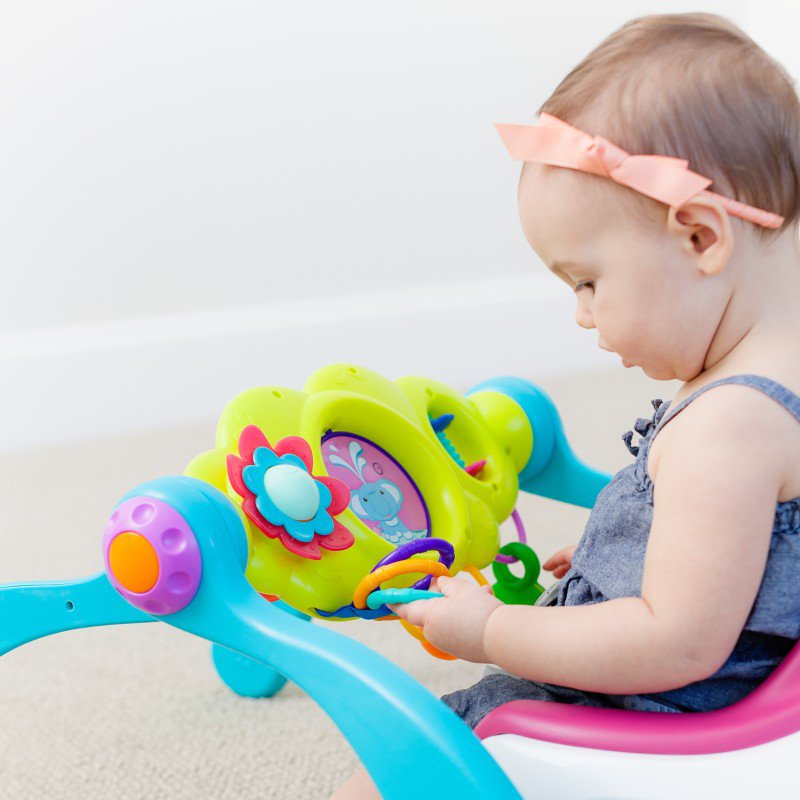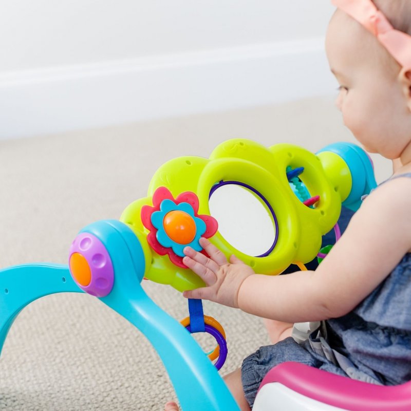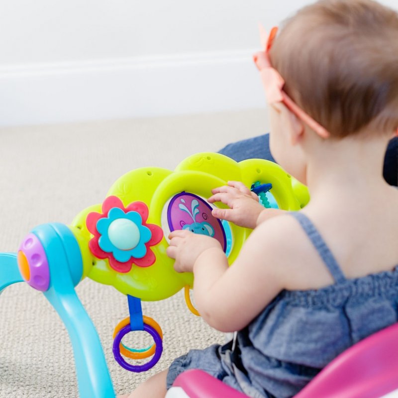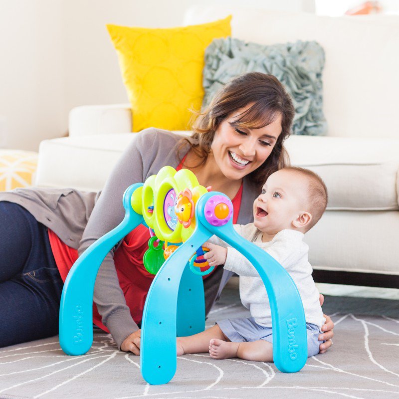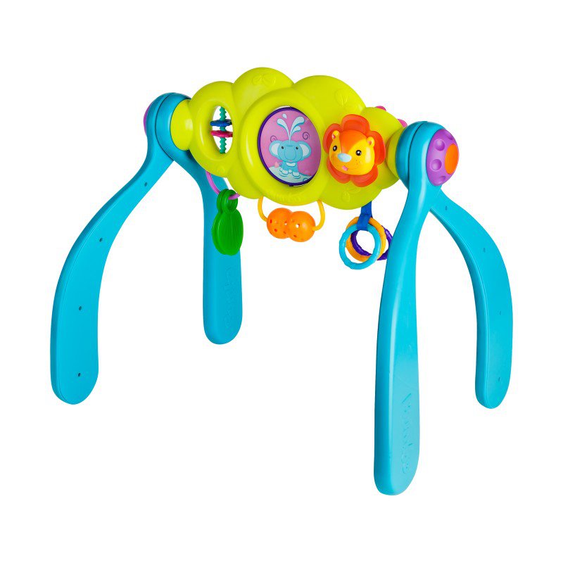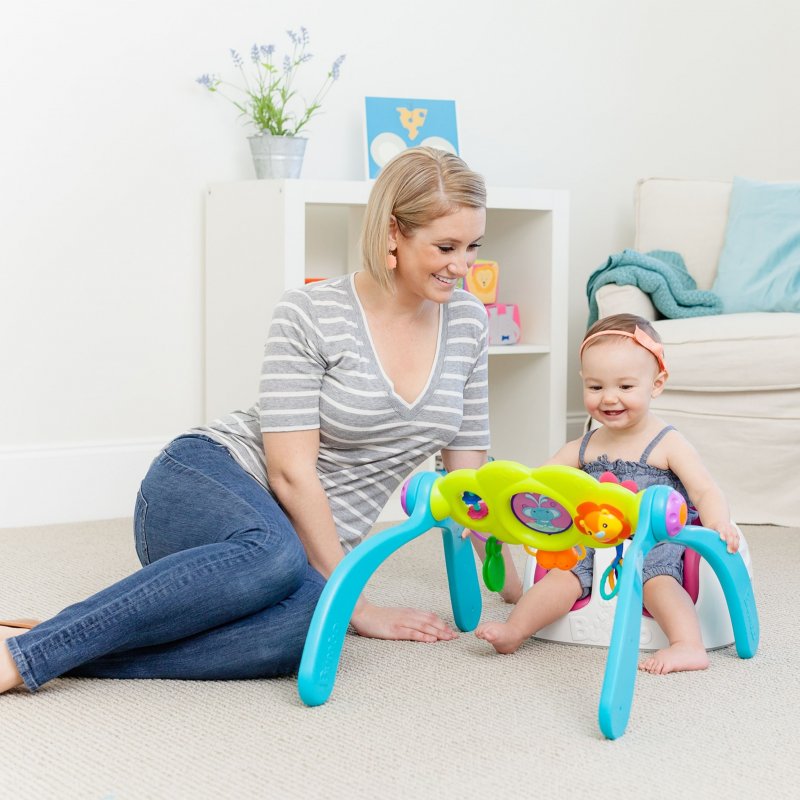 díky nastavitelným nohám hrazdičky ji lze použít 5 různými způsoby: leh na zádech / leh na bříšku / sezení v sedátku Bumbo / sezení na podlaze / ve stoje