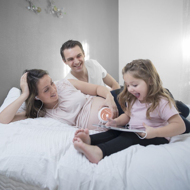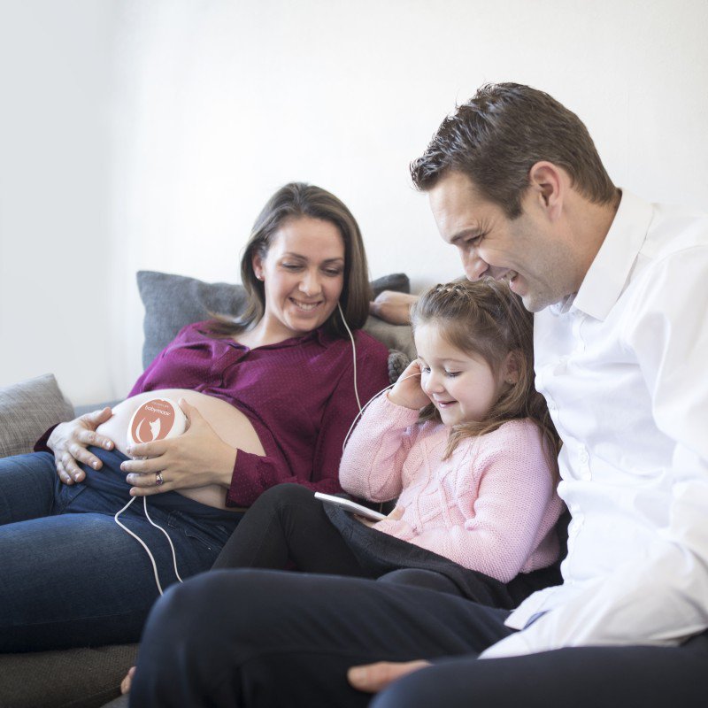 Přístroj určený k poslouchání a zaznamenávání rytmu srdečního tepu děťátka a jeho sdílení.