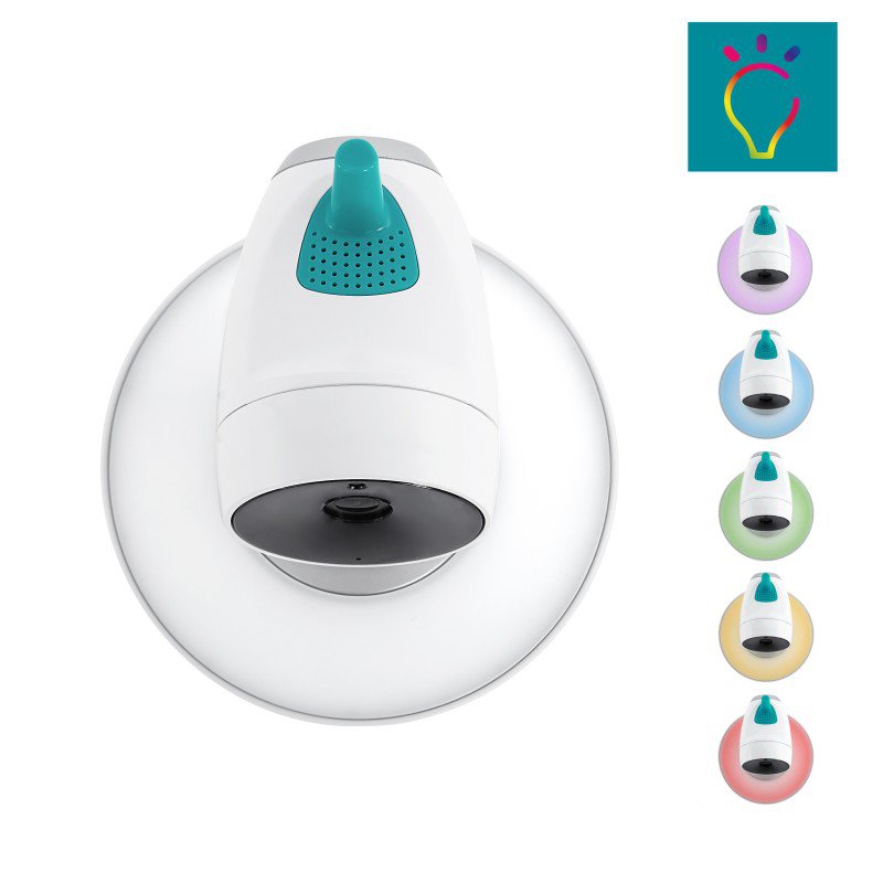 Pohon k otáčení je ukryt v noze kamery, je inovativní, dostatečně výkonný a velmi tichý. Kamera mění směr pomalu a plynule bez trhavých pohybů. Motorizace kamery Yoo-Moov dává smysl ve spojení s velkou 4,3'' obrazovkou. Nic vám neunikne. Díky vysoké kvalitě obrazu, velikosti displeje a funkci zoom můžete vidět skoro každý kout dětského pokojíku. Kameru lze snadno připevnit na zeď (montážní set je součástí balení), aby byl zajištěn optimální výhled na pokoj. Tato video chůvička zajistí vám i dítěti pohodu. Vytváří klidnou atmosféru v pokojíčku. Podstavec kamery je vybaven vícebarevným nočním osvětlením, máte na výběr 7 barev. Povrchové zpracování zajistí rozptýlení na jemné světlo, které neoslňuje spící dítě.