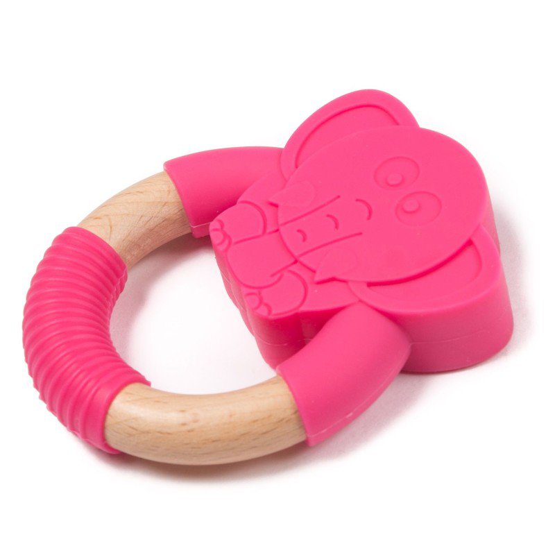 Kousátko B-TEETHER ANIMAL WOOD Pink Elephant