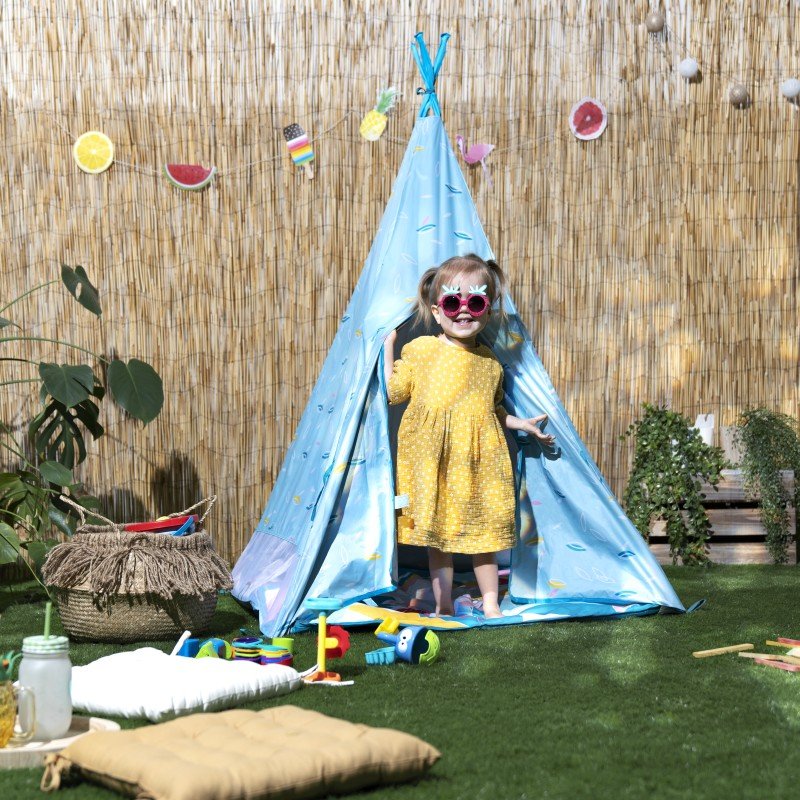 Stan Teepee je vysoký 1,20m. Díky své konstrukci je robustní a stabilní - Vaše dítě si v něm může hrát několik let spolu se svými kamarády či dalšími sourozenci. Teepee poskytuje ochranu před škodlivými slunečními paprsky díky své anti-UV SPF 50+ látce. Navíc, ve spodní části teepee jsou větrací otvory, které umožňují snadnější přísun vzduchu a zabraňují nadměrnému zahřívání vašeho malého anděla.