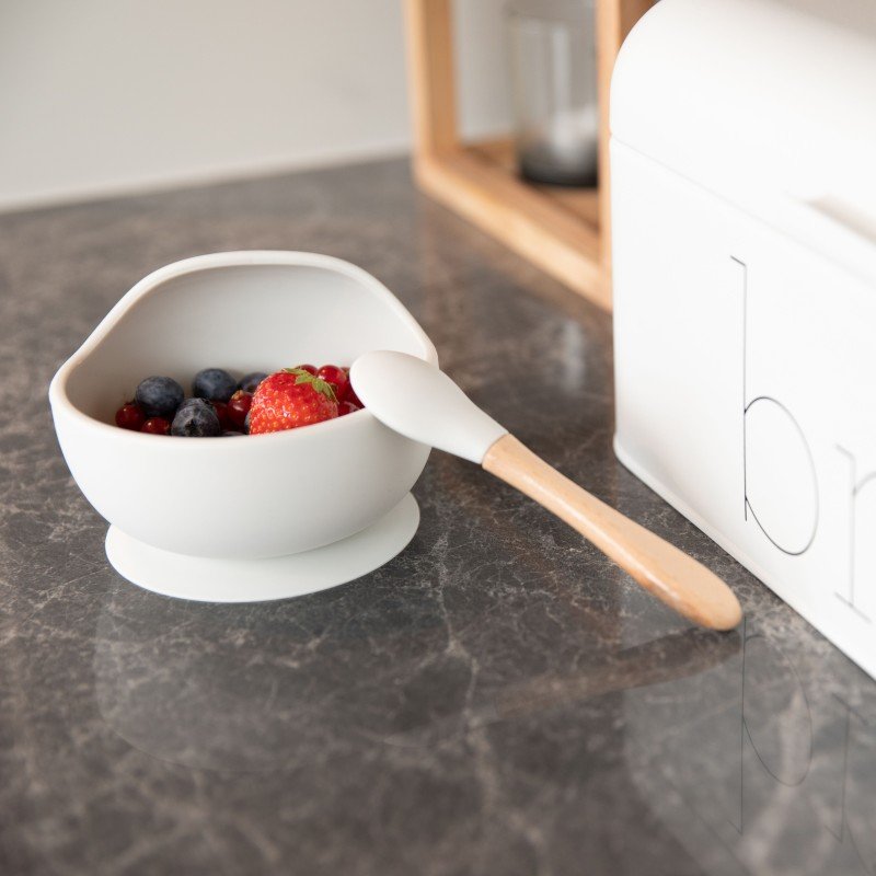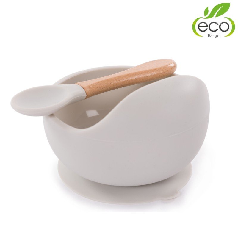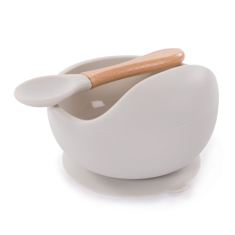 Silikonová miska s přísavkou a lžičkou Grey