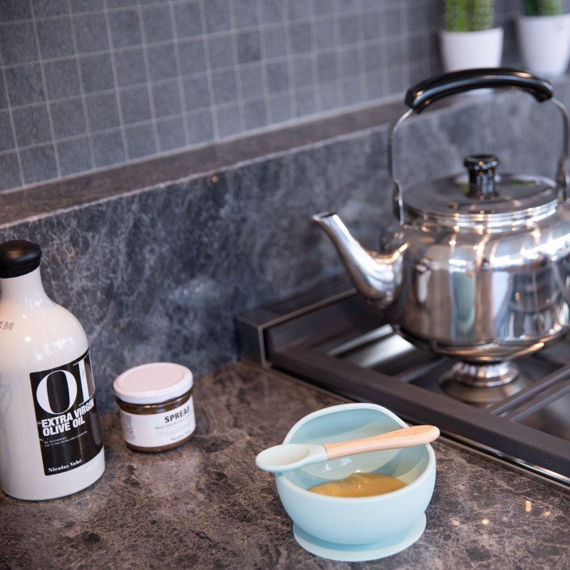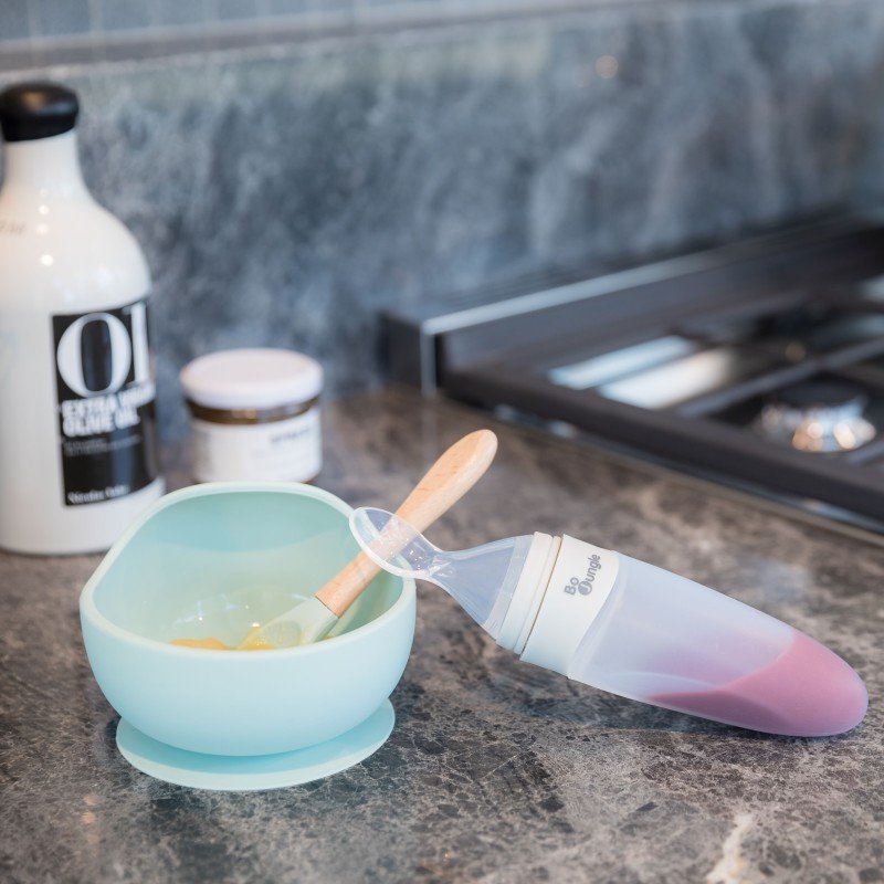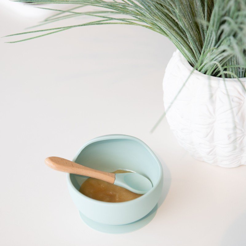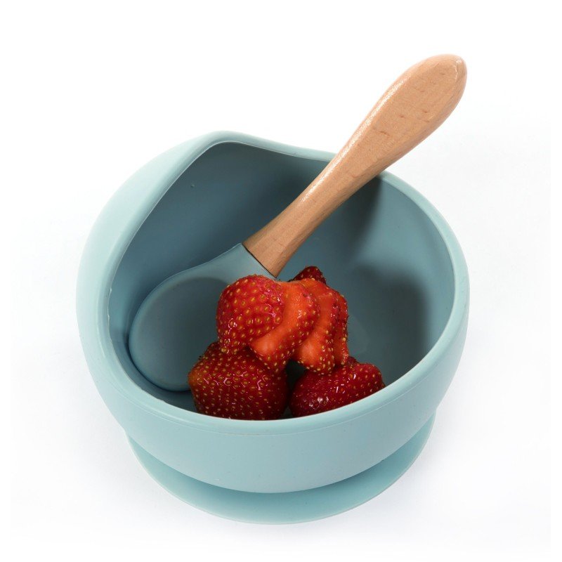 Silikonová miska s přísavkou a lžičkou Pastel Blue
