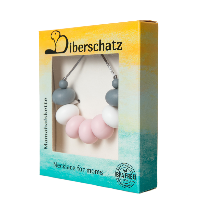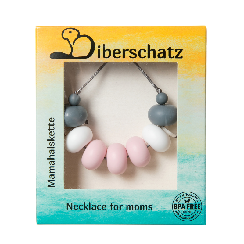 Před každým použitím náhrdelník pečlivě zkontrolujte. Při jakýchkoliv známkách poškození jej vyhoďte a nahraďte novým. Nikdy nenechávejte své dítě s tímto výrobkem bez dozoru. Kousací korále jsou určeny k nošení rodičem, nikoli dítětem, mohlo by dojít k uškrcení. Kousací korále nejsou hračka. Čištění: Před prvním použitím a po každém dalším použití kousací korále omývejte teplou mýdlovou vodou, opláchněte a důkladně osušte. Nevyvařujte jej, nedávejte jej do mikrovlnné trouby, sterilizátoru ani do myčky na nádobí. Udržujte kousací korále vždy čistý. Uchovávejte výrobek na čistém místě. Uchovejte si tyto informace pro budoucí potřebu. V souladu s evropskou normou EN71. Číslo výrobku najdete na obalu.