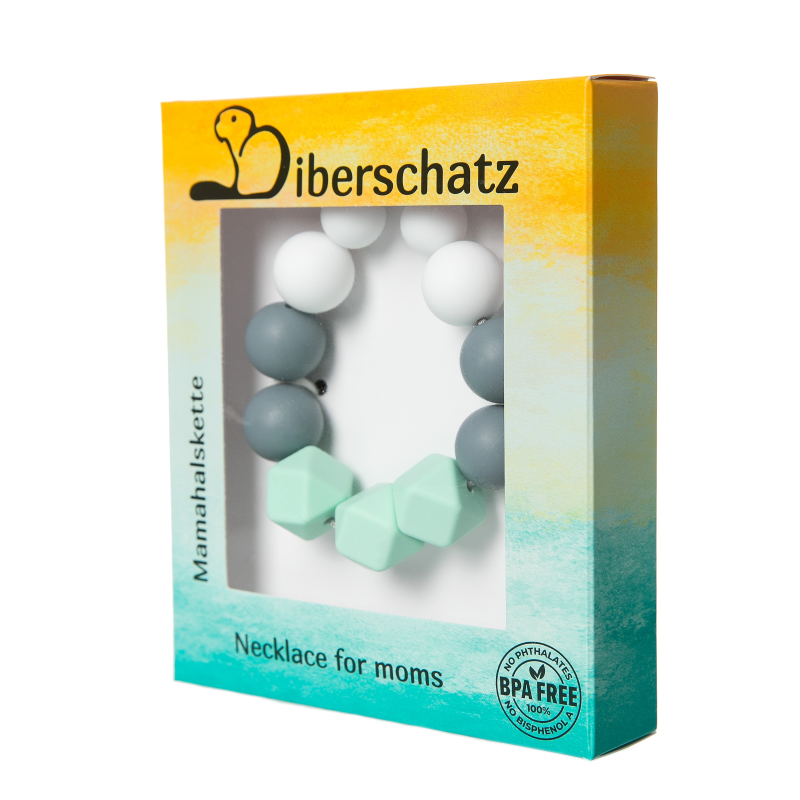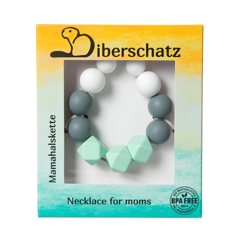Před každým použitím náhrdelník pečlivě zkontrolujte. Při jakýchkoliv známkách poškození jej vyhoďte a nahraďte novým. Nikdy nenechávejte své dítě s tímto výrobkem bez dozoru. Kousací korále jsou určeny k nošení rodičem, nikoli dítětem, mohlo by dojít k uškrcení. Kousací korále nejsou hračka. Čištění: Před prvním použitím a po každém dalším použití kousací korále omývejte teplou mýdlovou vodou, opláchněte a důkladně osušte. Nevyvařujte jej, nedávejte jej do mikrovlnné trouby, sterilizátoru ani do myčky na nádobí. Udržujte kousací korále vždy čistý. Uchovávejte výrobek na čistém místě. Uchovejte si tyto informace pro budoucí potřebu. V souladu s evropskou normou EN71. Číslo výrobku najdete na obalu.