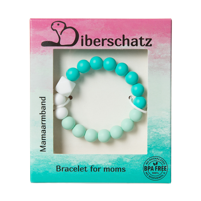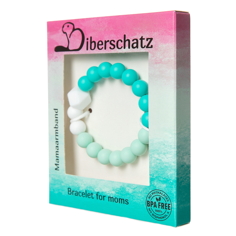 Před každým použitím náramek pečlivě zkontrolujte. Při jakýchkoliv známkách poškození jej vyhoďte a nahraďte novým. Nikdy nenechávejte své dítě s tímto výrobkem bez dozoru. Náramek je určen k nošení rodičem, nikoli dítětem. Kousací náramek není hračka. Čištění: Před prvním použitím a po každém dalším použití náramek omývejte teplou mýdlovou vodou, opláchněte a důkladně osušte. Nevyvařujte jej, nedávejte jej do mikrovlnné trouby, sterilizátoru ani do myčky na nádobí. Udržujte kousací náramek vždy čistý. Uchovávejte výrobek na čistém místě. Uchovejte si tyto informace pro budoucí potřebu. V souladu s evropskou normou EN71. Číslo výrobku najdete na obalu.