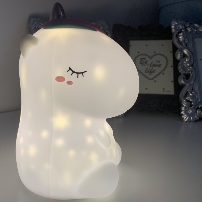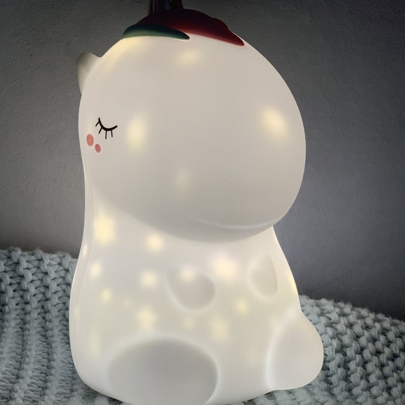 Silikonová LED lampička s projekcí hvězdiček, která doprovází děťátko do říše snů!