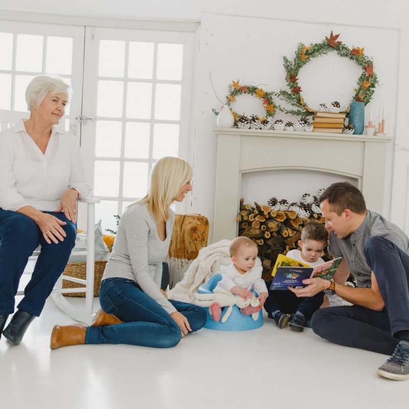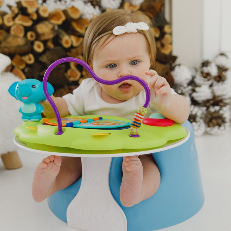 Dětské sedátko umožňující dítěti sedět samostatně na podlaze a díky tomu má maminka volné obě ruce - např. na hraní, krmení apod.
