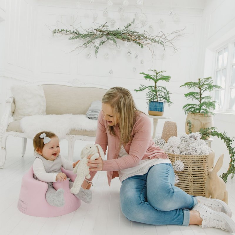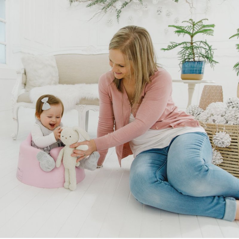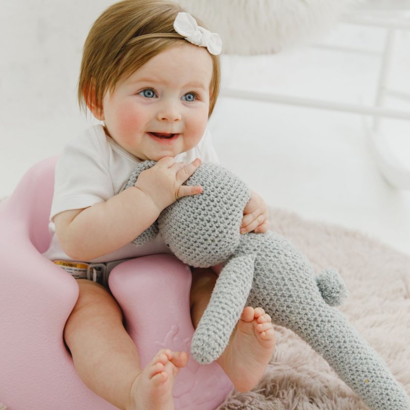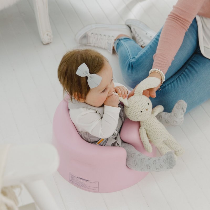 Dětské sedátko umožňující dítěti sedět samostatně na podlaze a díky tomu má maminka volné obě ruce - např. na hraní, krmení apod.
