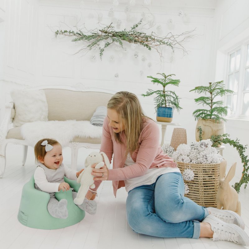 Dětské sedátko umožňující dítěti sedět samostatně na podlaze a díky tomu má maminka volné obě ruce - např. na hraní, krmení apod.