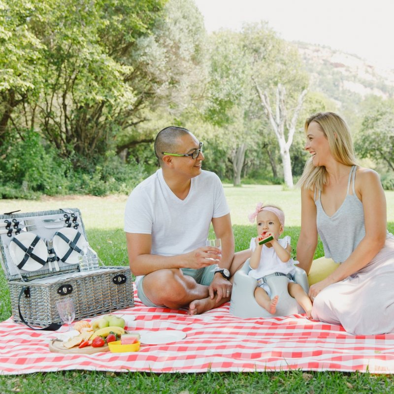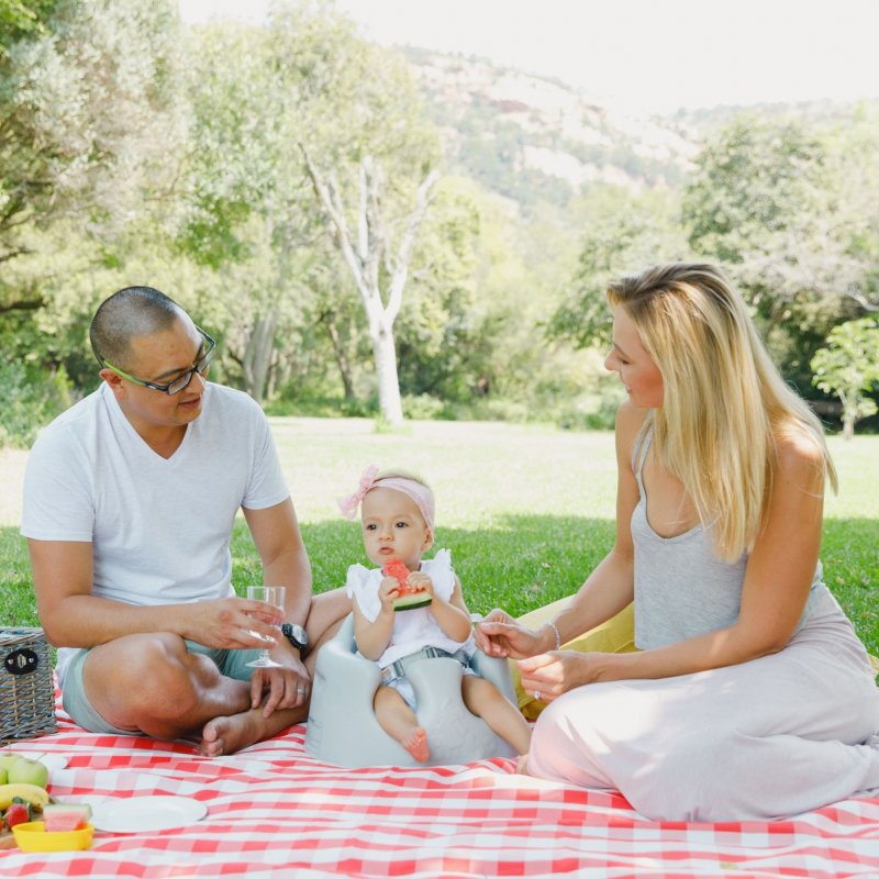 Dětské sedátko umožňující dítěti sedět samostatně na podlaze a díky tomu má maminka volné obě ruce - např. na hraní, krmení apod.