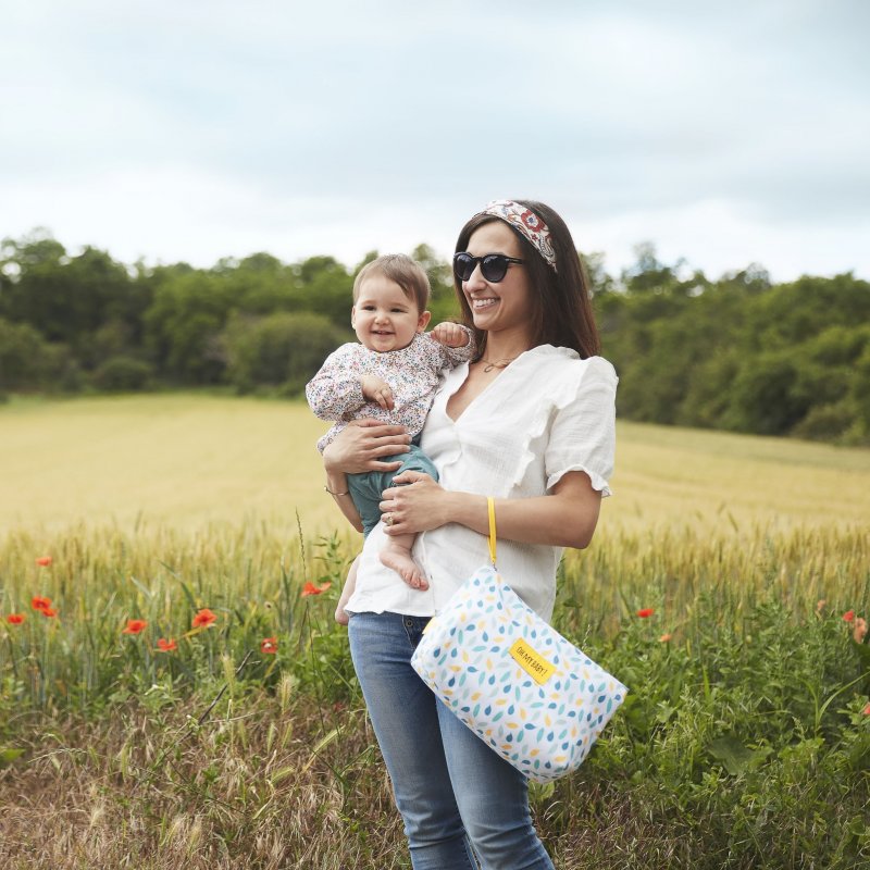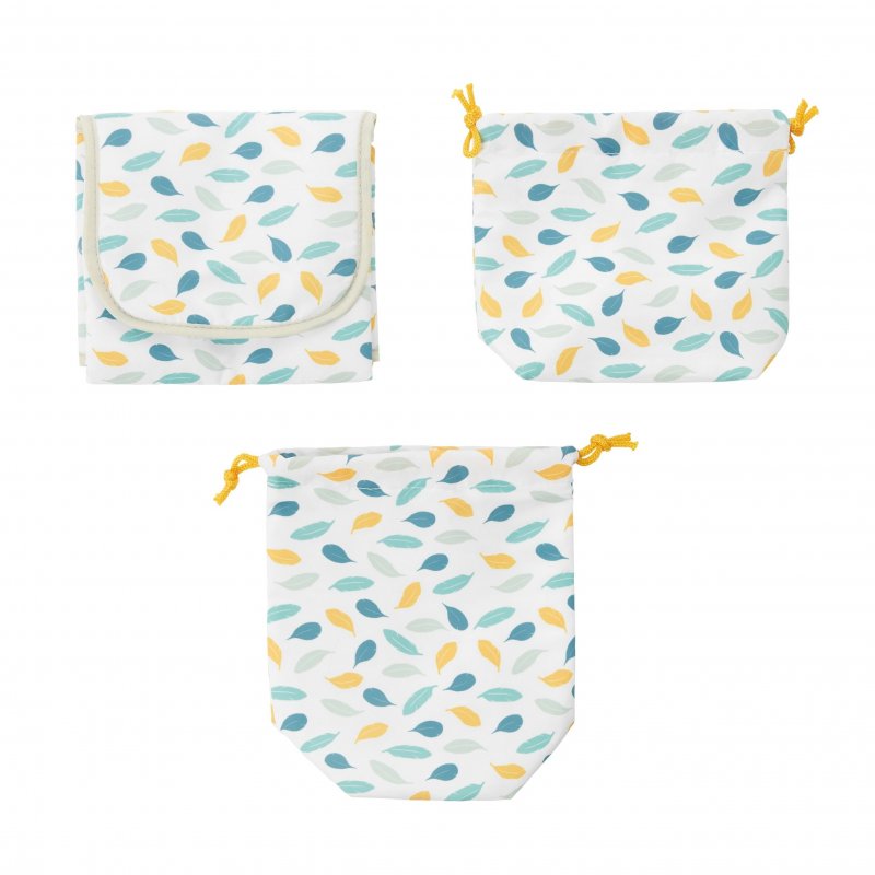 - 2 menší pouzdra jsou různě velké (20cm x 17cm a 18cm x 22cm), mají voděodolnou podšívku a roztomilou stahovací šňůrku - ideální na plenky, náhradní oblečení, hygienické potřeby aj.