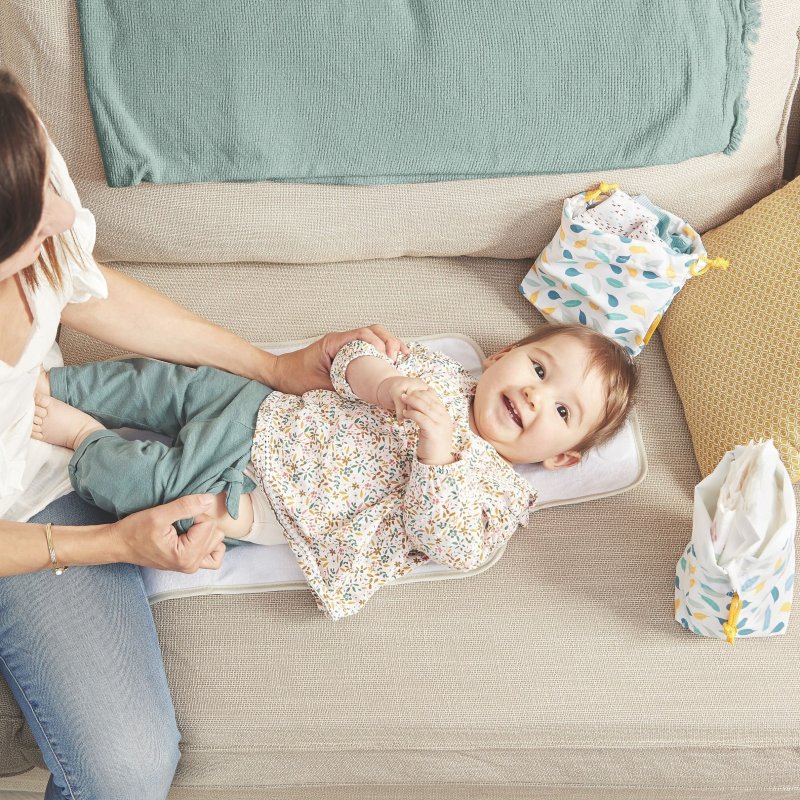 - přebalovací podložka (62cm x 32cm x 0,3cm) je skládatelná, lze ji prát, na jedné straně má froté materiál