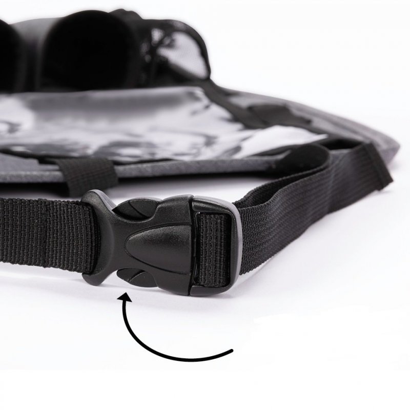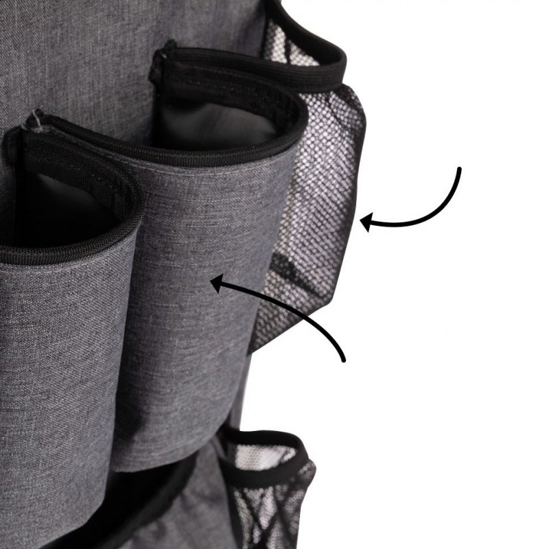 - upevňuje se pomocí nastavitelného pásku (kolem hlavové opěrky) a pomocí gumiček (kolem spodní části autosedadla)