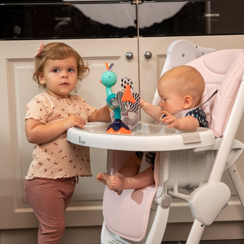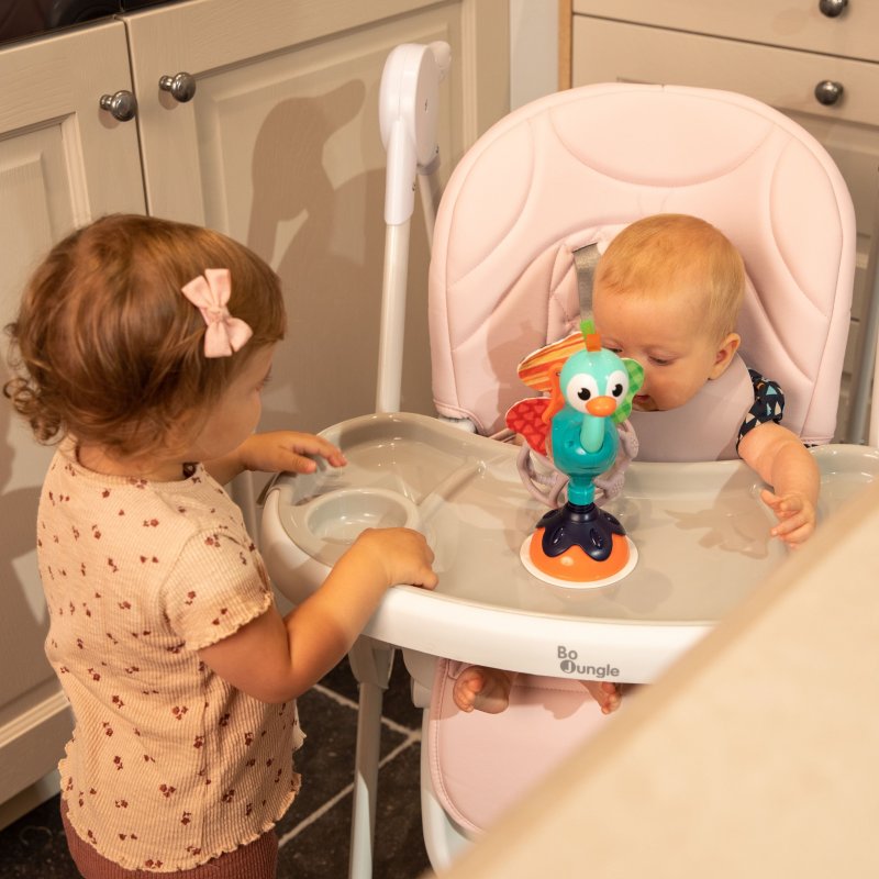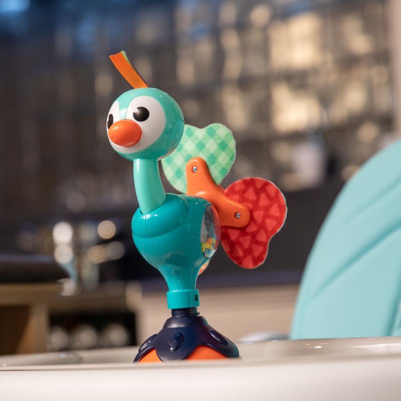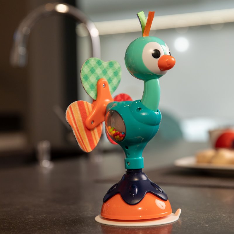 Plastová hračka s přísavkou, pomocí které se připevní k jídelnímu pultíku, a tím se zabrání tomu, aby ji Vaše dítko házelo na zem. Zábavné a zajímavé funkce nadlouho zabaví Vaše dítě a povzbuzují je, aby při krmení seděli v klidu.