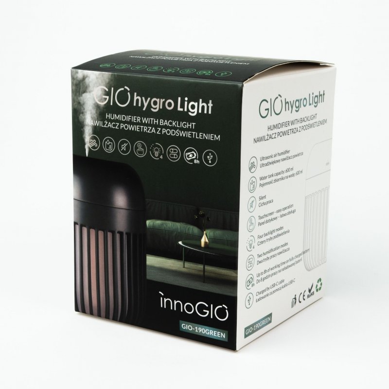 Designový zvlhčovač vzduchu GIOhygro Light je nejen zařízení, které obnovuje správnou vlhkost v místnosti, ale také noční lampička. Díky malým rozměrům, estetickému designu a tichému provoznímu režimu je GIOhygro Light ideální do každé místnosti!