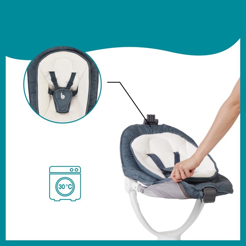 • materiál potahu houpačky: 100% polyester, možno prát na 30° C, doporučujeme gelové prací prostředky