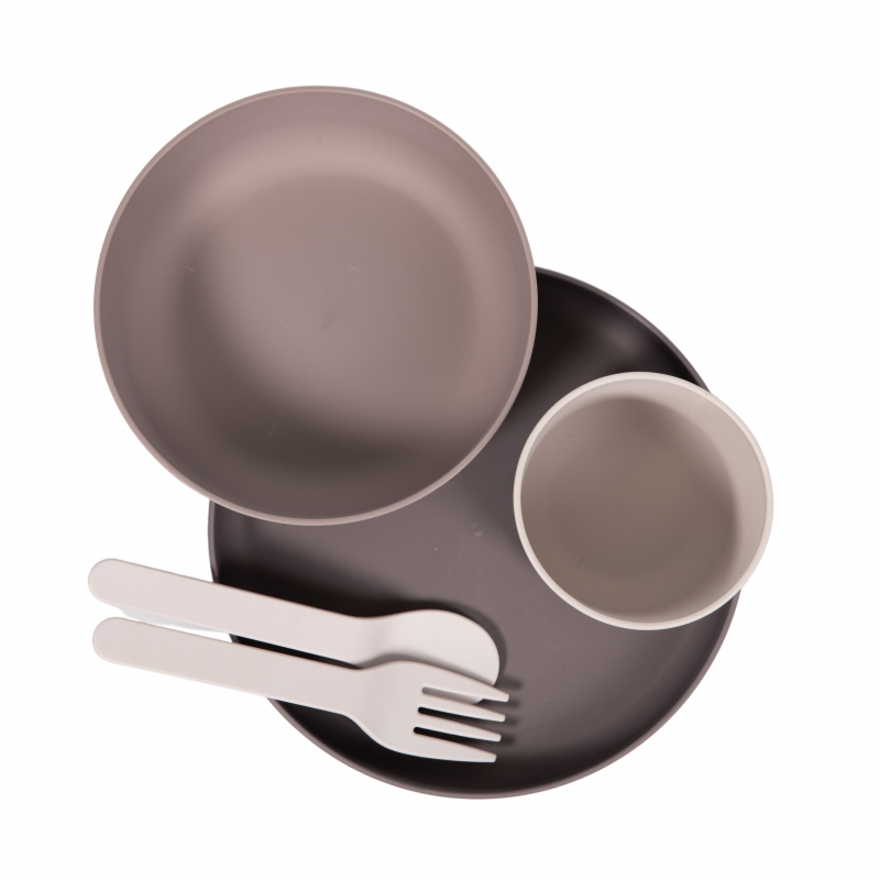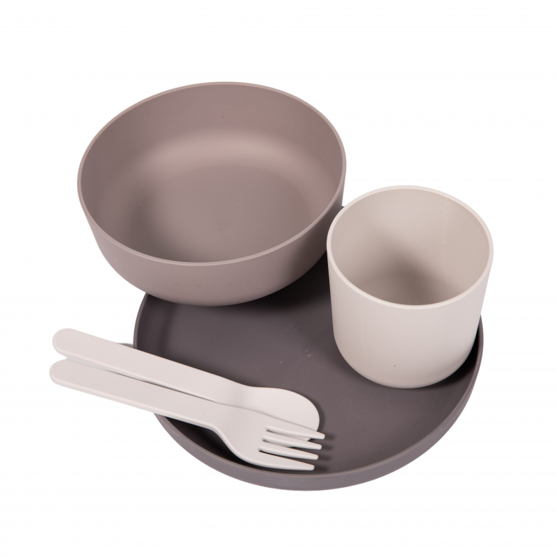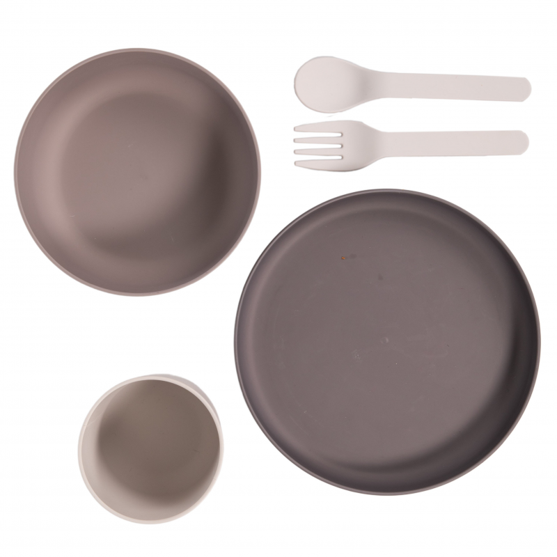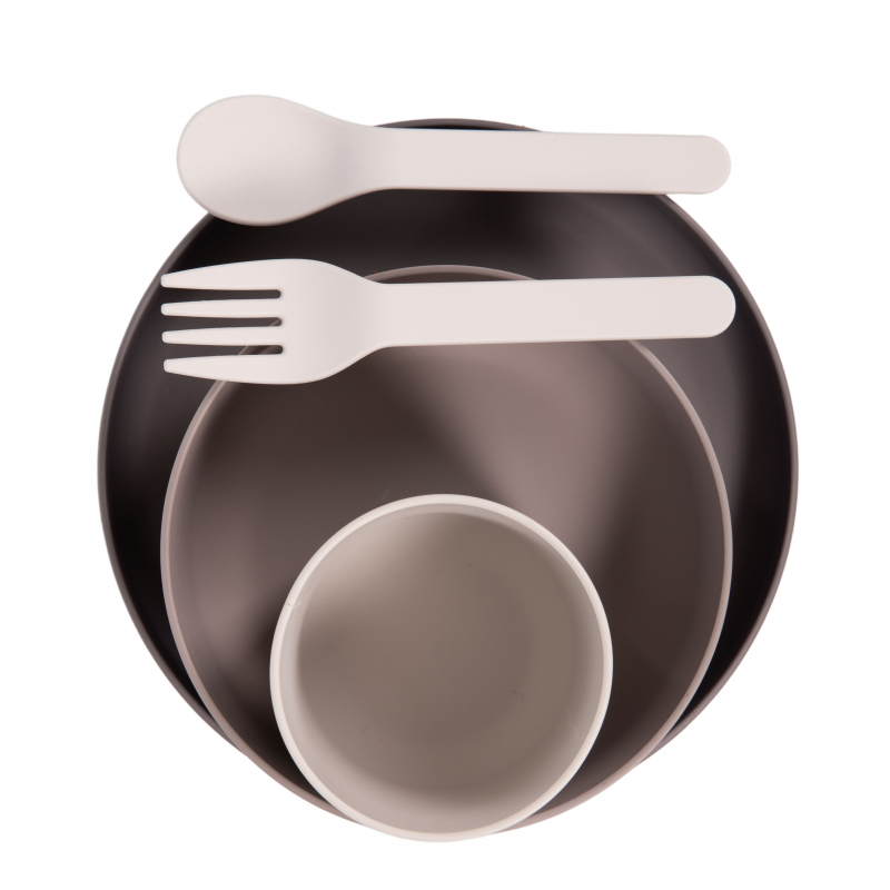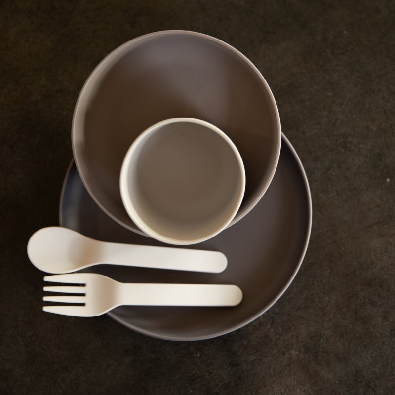 Bezpečná, biologicky rozložitelná 5-ti dílná sada nádobí z CPLA materiálu! Jedná  se o 100% biologický materiál, který je vhodný pro použití i v mikrovlnné troubě.