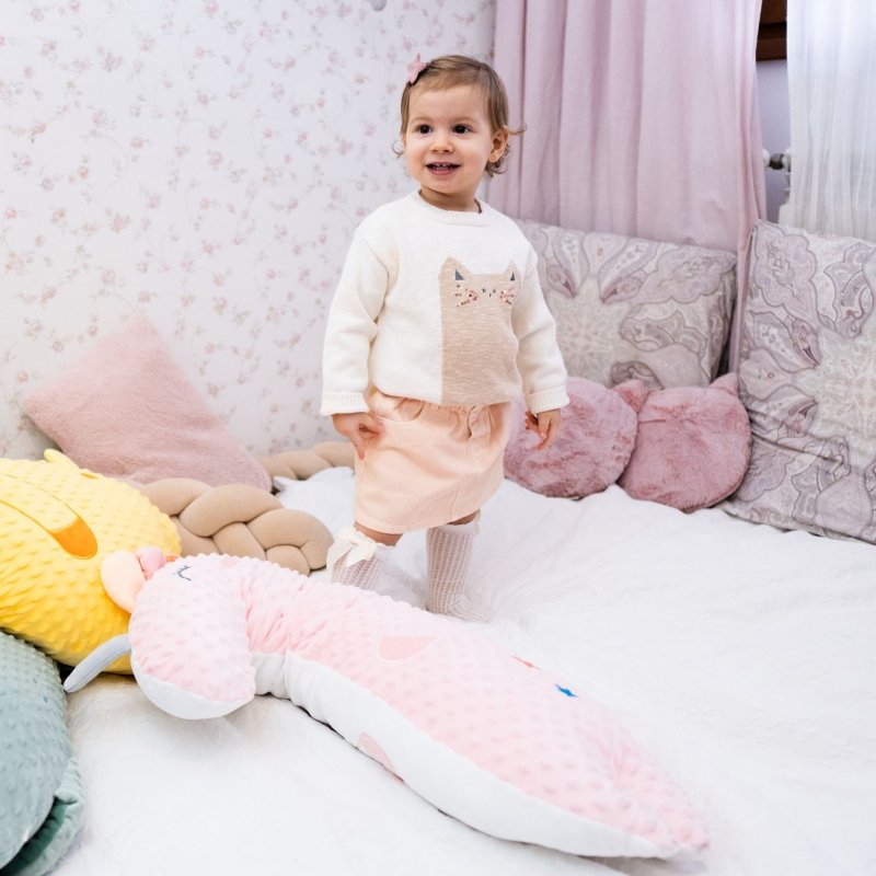 Zdá-li se děťátku v noci špatný sen nebo má noční můru, bude polštářek po jeho boku, aby se k němu přitulilo a zajistilo mu pocit bezpečí. Polštářky mohou také sloužit jako opora pro batolata, zejména při prvních pokusech sednout si nebo je chránit před nárazy do příček postýlky. Hraní během dne bude s těmito plyšáky ještě zábavnější!