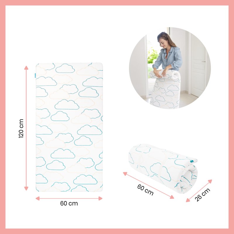 Cosy'Lite Nomad je pohodlná, přenosná a ekologická matrace ideální pro miminka, která ráda cestují!