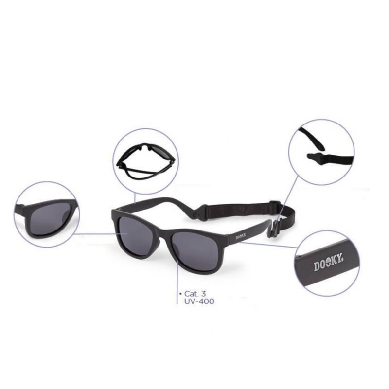 Existuje několik požadavků, které musí dobré sluneční brýle pro nejmenší děti ve věku 6-36 měsíců splňovat. Sluneční brýle Dooky Santorini mají všechno! Díky ochraně UV-400 jsou vhodné jak pro zimní sporty, tak i pro letní sluneční paprsky. Brýle mají skla odolná proti poškrábání, jsou prakticky nerozbitná, polarizační a antireflexní. Pomocí odnímatelného pásku lze brýle snadno přizpůsobit. Santorini se dodávají spolu s látkovým sáčkem.