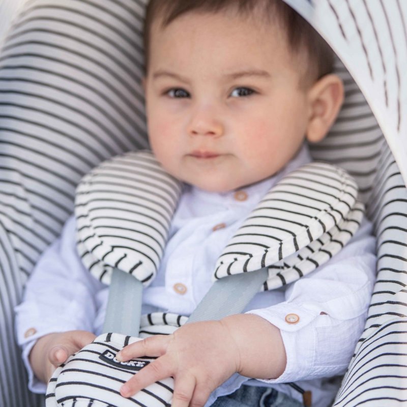 • pomocí suchého zipu možno přidělat na pásy autosedačky, kšíry v kočárku nebo autopásy