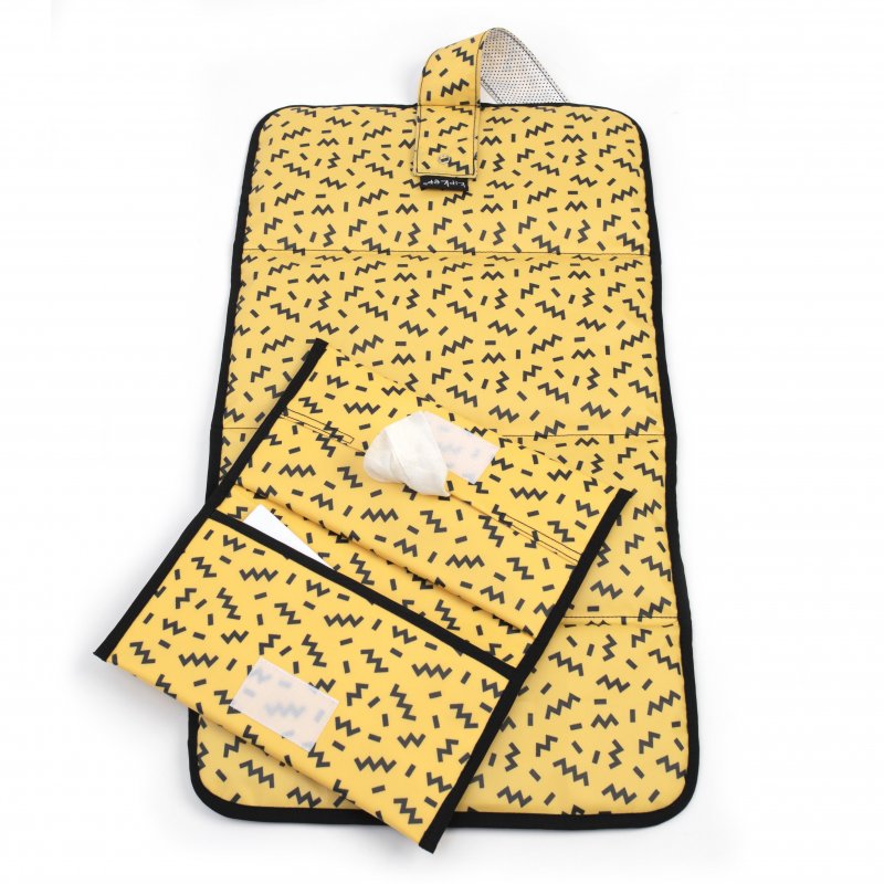 - recyklovaný polyester bez PVC - nepropustná strana, vhodná pro výměnu hodně zašpiněné plenky; dle potřeby ji lze otírat vlhkým hadříkem