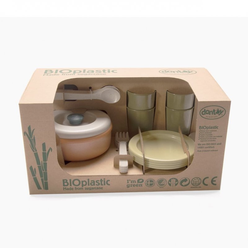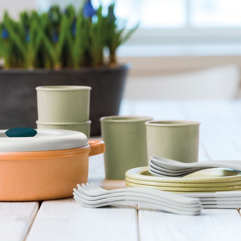 - jídelní sada vyrobená z bioplastu - z cukrové třtiny