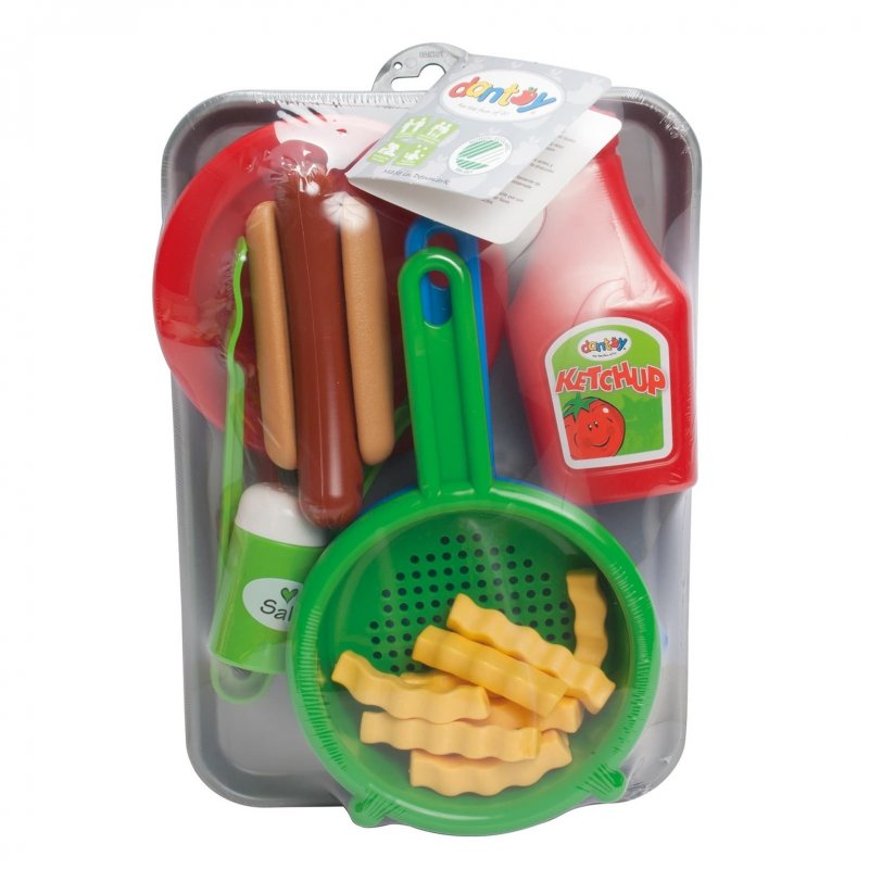 - pestrobarevná plastová sada nádobí + hotdog s tácem