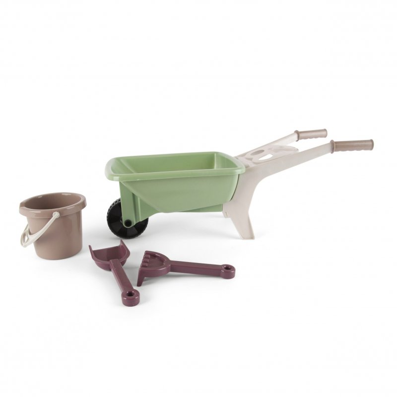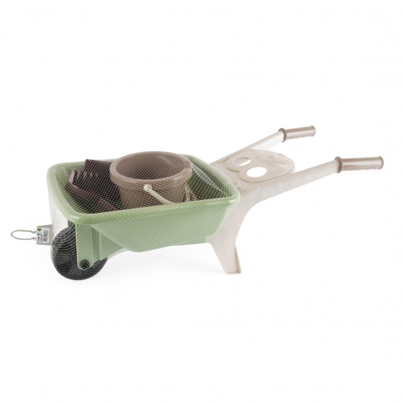 - zahradnické kolečko s kyblíkem, lopatičkou a hrabičkami v krásných, jemných barvách