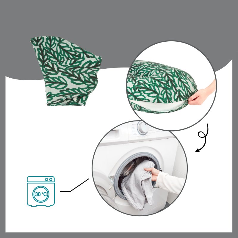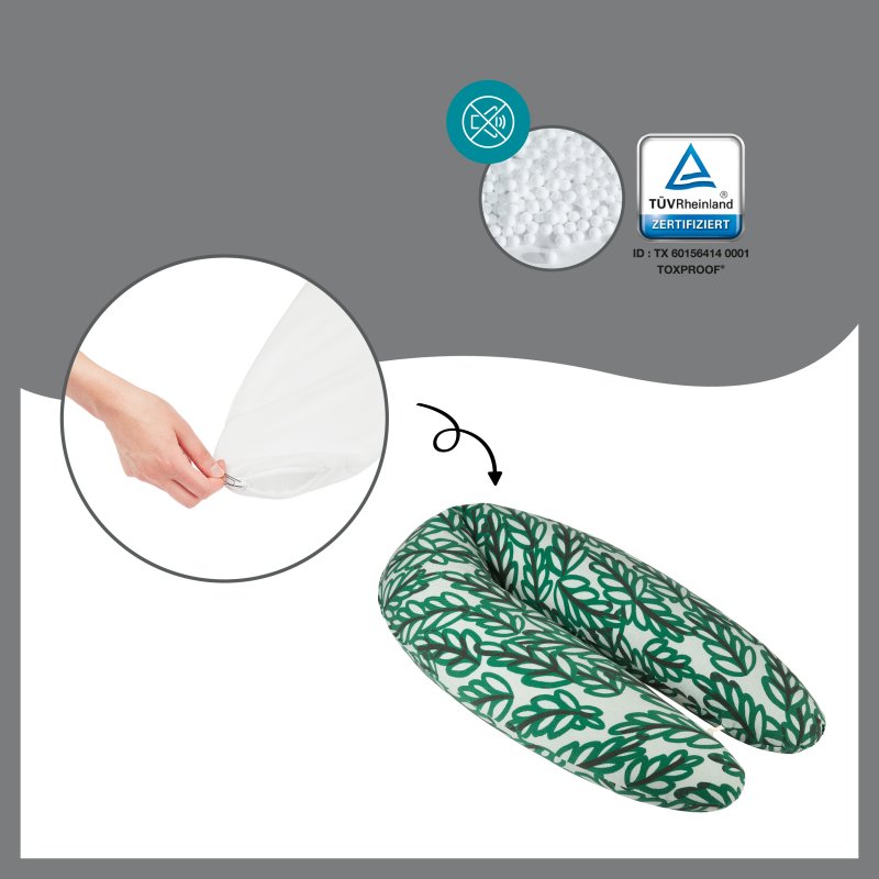 Po narození miminka nabere polštář nový život! Lze jej použít pro snadnější kojení nebo krmení z láhve či pro podložení miminka. Mírně zkosený tvar polštáře umožňuje položit miminko do potřebné výšky a pohodlné pozice. Navíc, jednoduchý upevňovací systém drží polštář na místě a ponechává mamince volné ruce pro krmení děťátka.