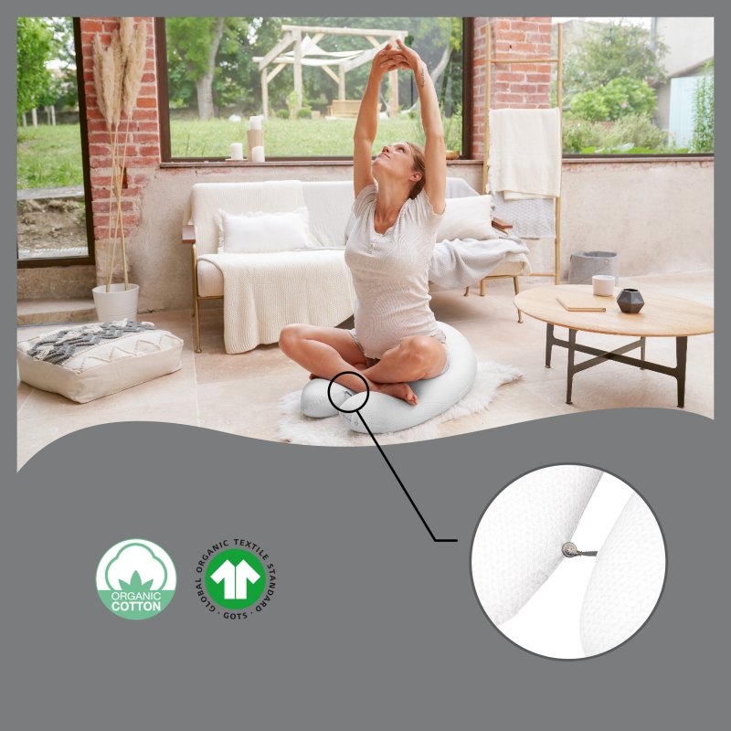 Tento podpůrný a relaxační polštář z kolekce B. LOVE nabízí bezkonkurenční pohodlí také díky super měkkému a pružnému potahu z organické bavlny.