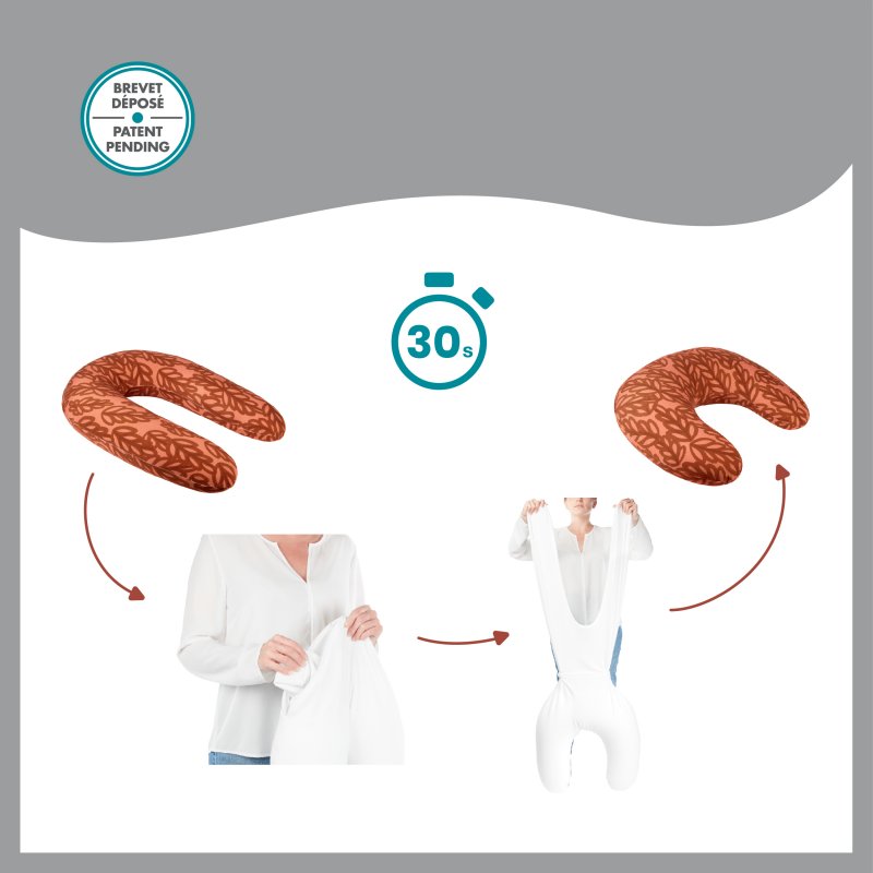 První, větší tvar polštáře B.LOVE 2v1 je ideální pro podporu zad, nohou a bříška během těhotenství. Dle potřeby jej lze přeměnit na velmi praktický, menší polštář např. pro kojení nebo krmení dítěte z láhve.