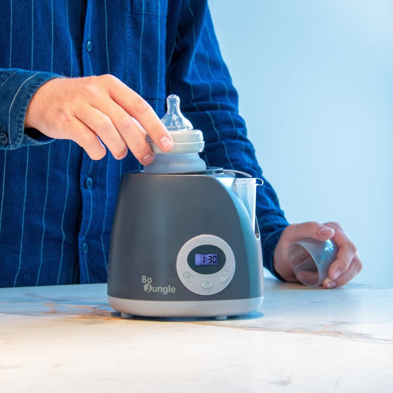 Ohřívač Home je navržen tak, aby umožnil zdravý způsob ohřevu láhve, a to během velmi krátké doby. Je bezpečný, rychlý a efektivní - jednoduše se vloží lahvička nebo příkrm do přiloženého košíku a uzavře se redukčním kroužkem. Tím se zajistí, že horká pára zůstane kolem láhve a urychlí se doba ohřevu. Poté se na digitálním displeji nastaví požadovaný čas ohřevu, který se může pohybovat od 1 do 12 minut. Jakmile čas vyprší nebo dojde-li voda, spustí se inteligentní alarm a ohřívač se automaticky vypne. Po ohřátí je velmi důležité lahvičku dobře protřepat, aby se teplo rovnoměrně rozšířilo. Pozn.: Nadměrné množství vody v nádrži a/nebo láhvi může zpomalit proces ohřevu.
