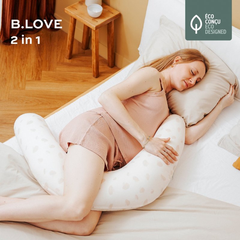 Podpůrný a relaxační polštář B.LOVE 2v1 je revoluční patentovaná inovace pro budoucí rodiče! Tento polštář z organické bavlny je mimořádně měkký s tichou výplní z mikrokuliček a je opravdu pohodlný. Jeho důmyslný, uživatelsky přívětivý systém přestavby znamená, že nyní můžete mít 2 polštáře v 1 pro dokonalou relaxaci šitou na míru!