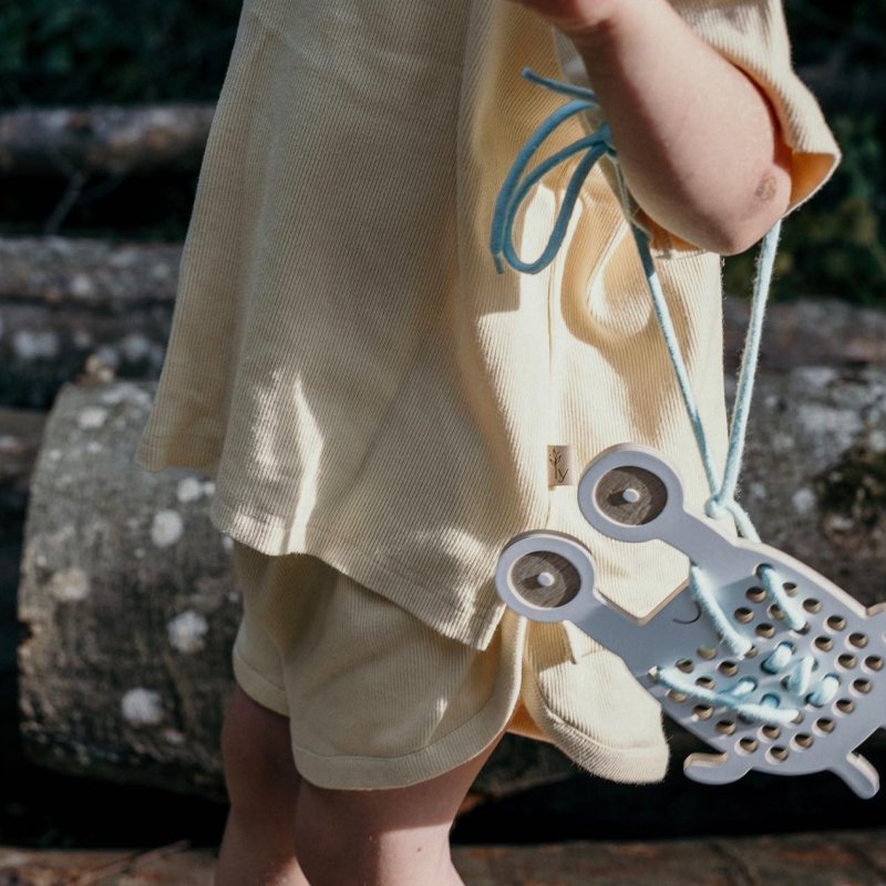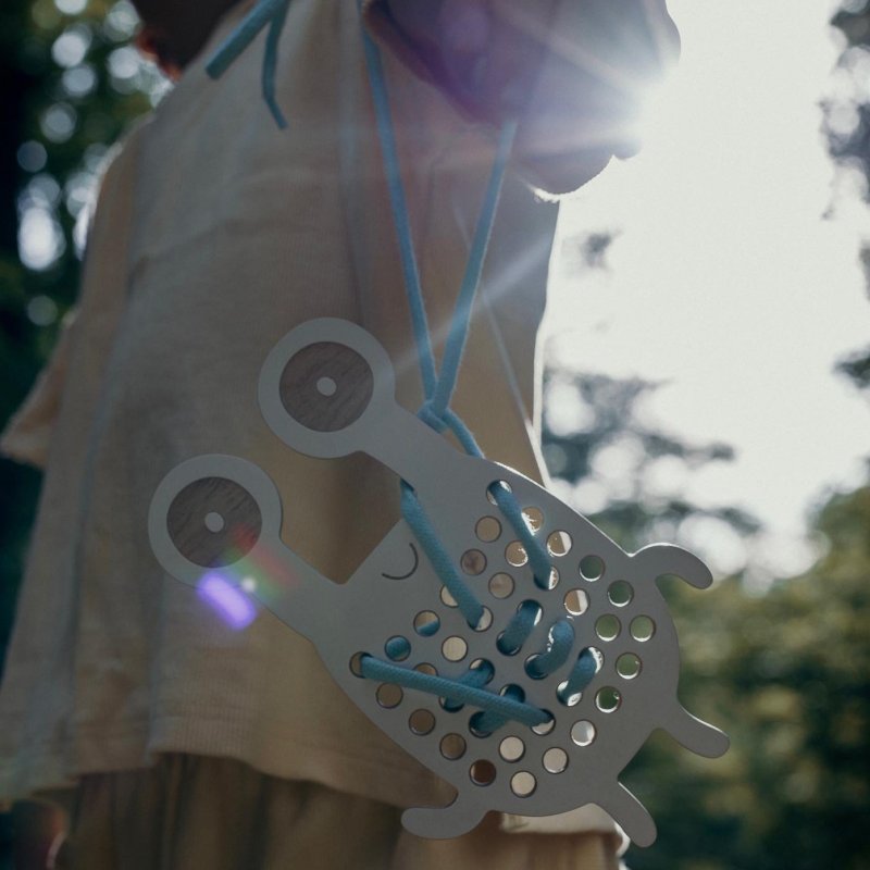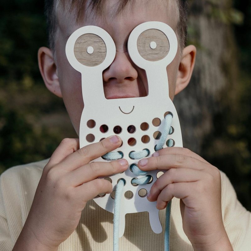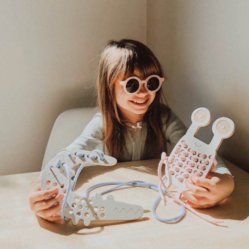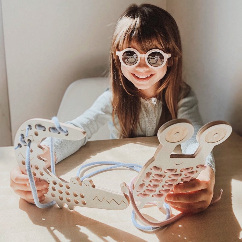 Dřevěná provlékací hračka rozvíjející kreativitu a představivost. Provlékání zvířátek šňůrkami představuje nejen radostný způsob zábavy, ale zároveň napomáhá v přípravě dětí na psaní ve škole. Rozvíjí manuální zručnost a jemnou motoriku. Trénink koordinace oko-ruka podporuje jazykové dovednosti a vytváření nových nervových spojení v mozku.