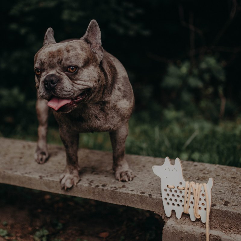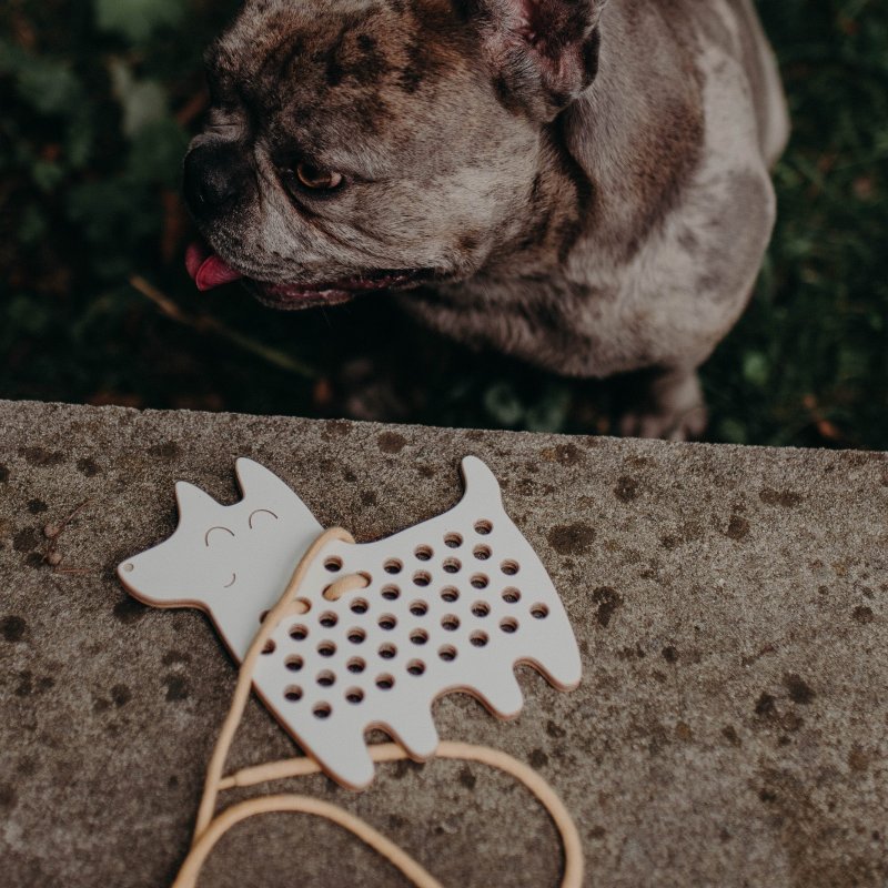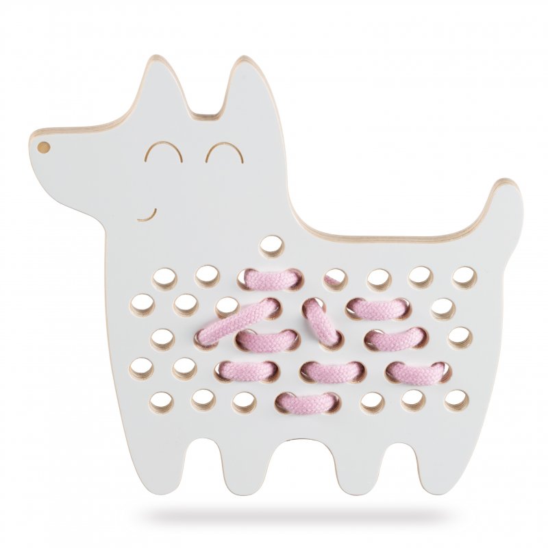 Dřevěná provlékací hračka rozvíjející kreativitu a představivost. Provlékání zvířátek šňůrkami představuje nejen radostný způsob zábavy, ale zároveň napomáhá v přípravě dětí na psaní ve škole. Rozvíjí manuální zručnost a jemnou motoriku. Trénink koordinace oko-ruka podporuje jazykové dovednosti a vytváření nových nervových spojení v mozku.