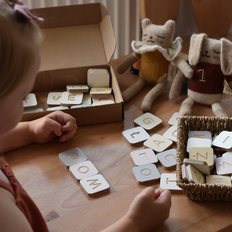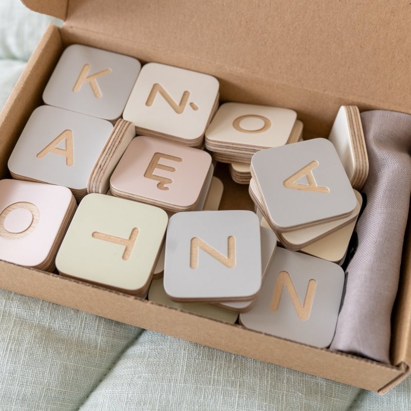 Sada dřevěných kostiček, která umožní dítěti hravou formu poznat písmenka. Sada je ideální jako zábavný nástroj pro rozvoj dětských dovedností a také vzdělávání. Podporuje tvorbu nových nervových spojení v mozku.