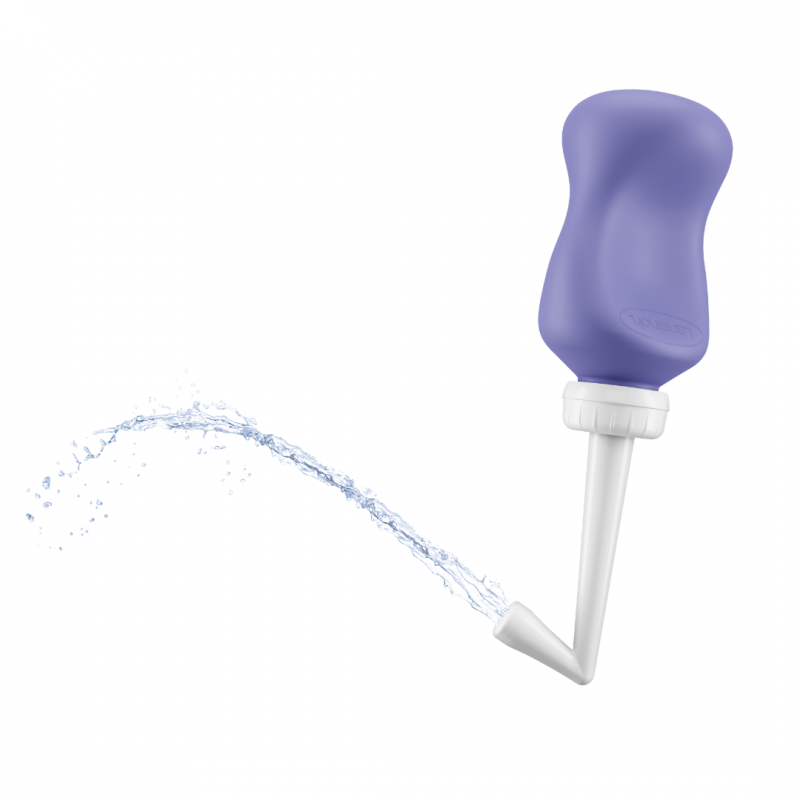 3. Na toaletě obraťte láhev dnem vzhůru a nasměrujte špičku směrem k perineální oblasti mezi nohama.