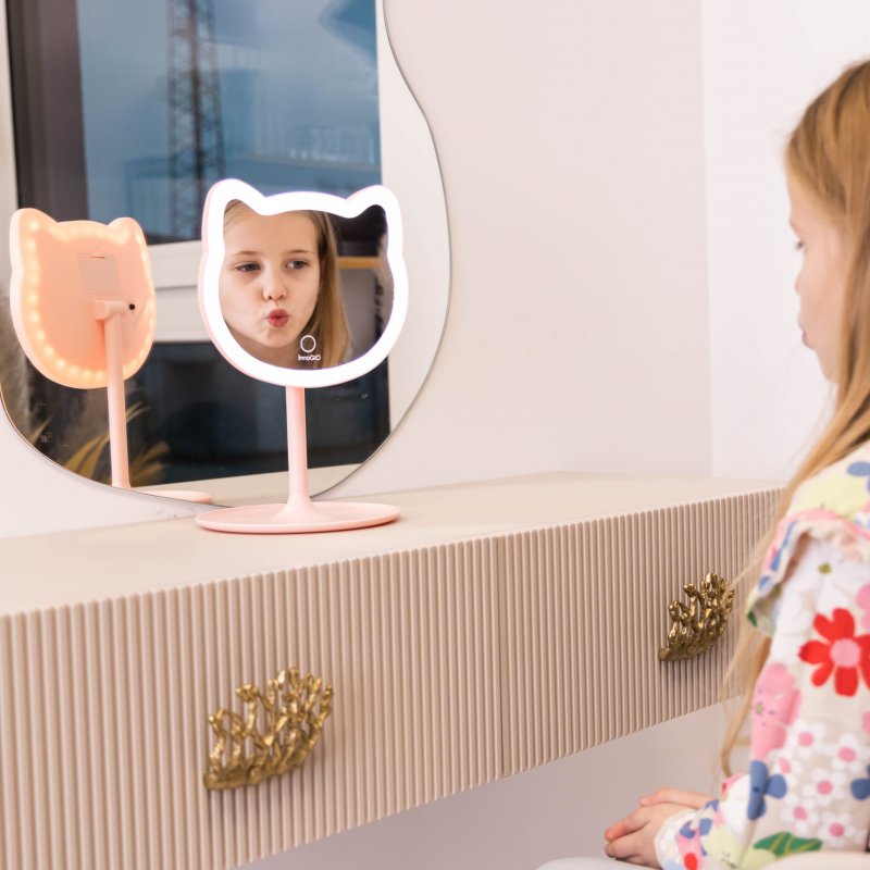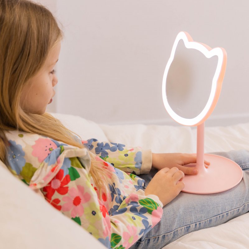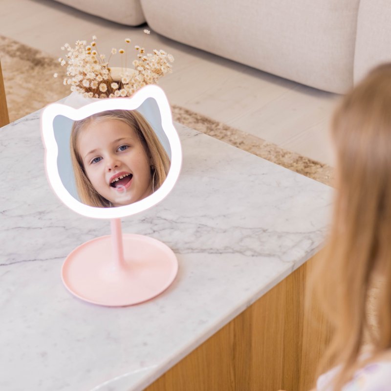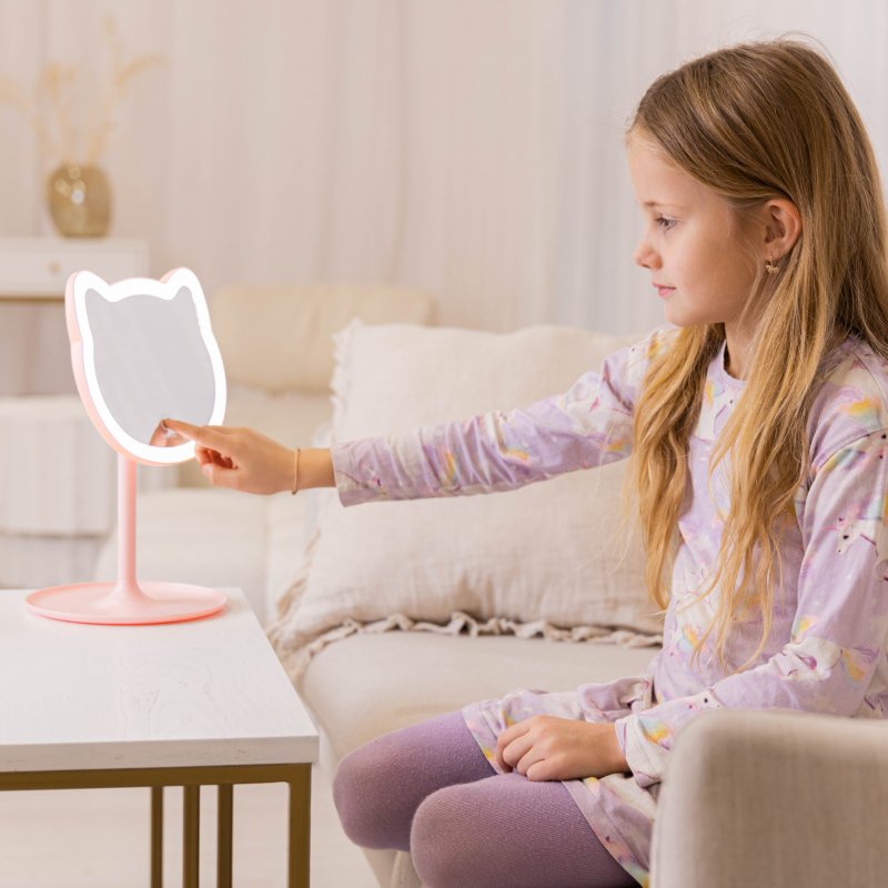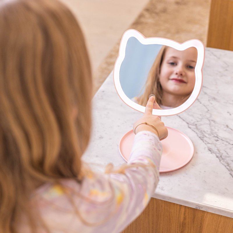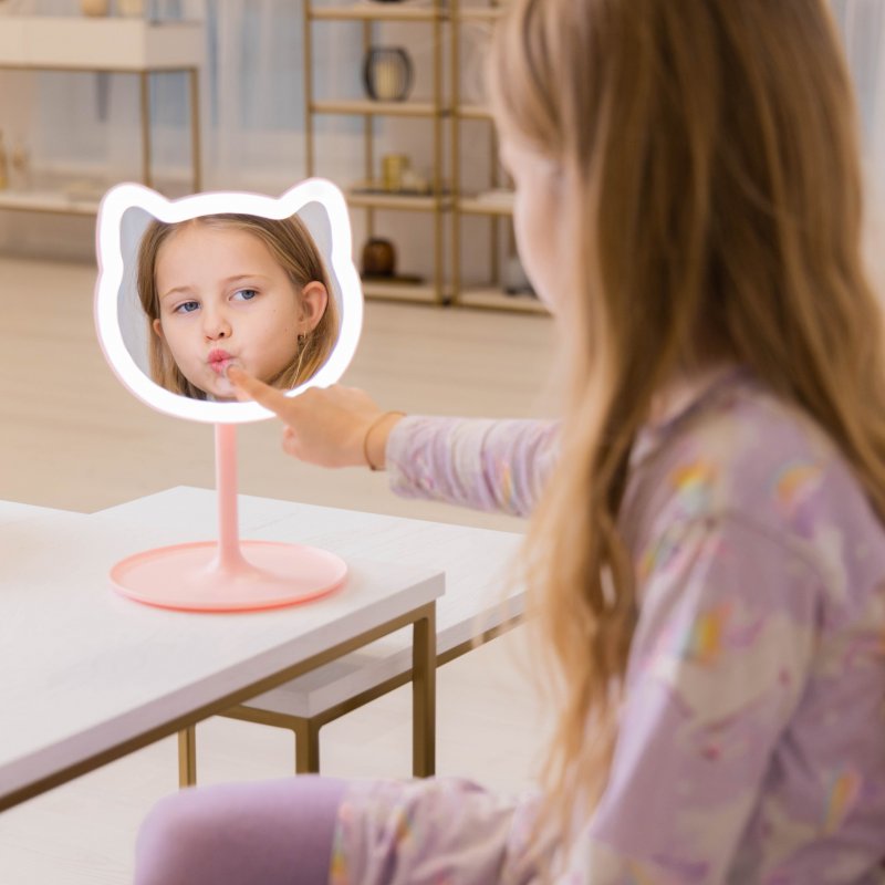 Kosmetické zrcátko s LED podsvícením, které nesmí chybět v pokojíčku žádné malé princezny. Každá holčička chce být jako její maminka, a tak její vlastní zrcadlo v oblíbeném tvaru a barvě dá holčičce příležitost objevit její přednosti a vybudovat si sebevědomí. Vylepšování krásy, péče o sebe nebo tvoření podivných obličejů je skvělá kreativní zábava, která dítěti umožní pozorovat vlastní tělo a jeho reakce. GIOperfect Pink Cat je více než jen zrcadlo - je to magický zdroj krásy a sebevědomí!