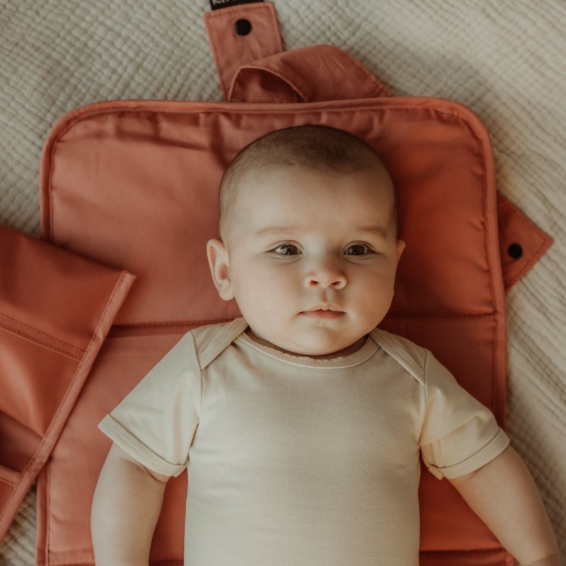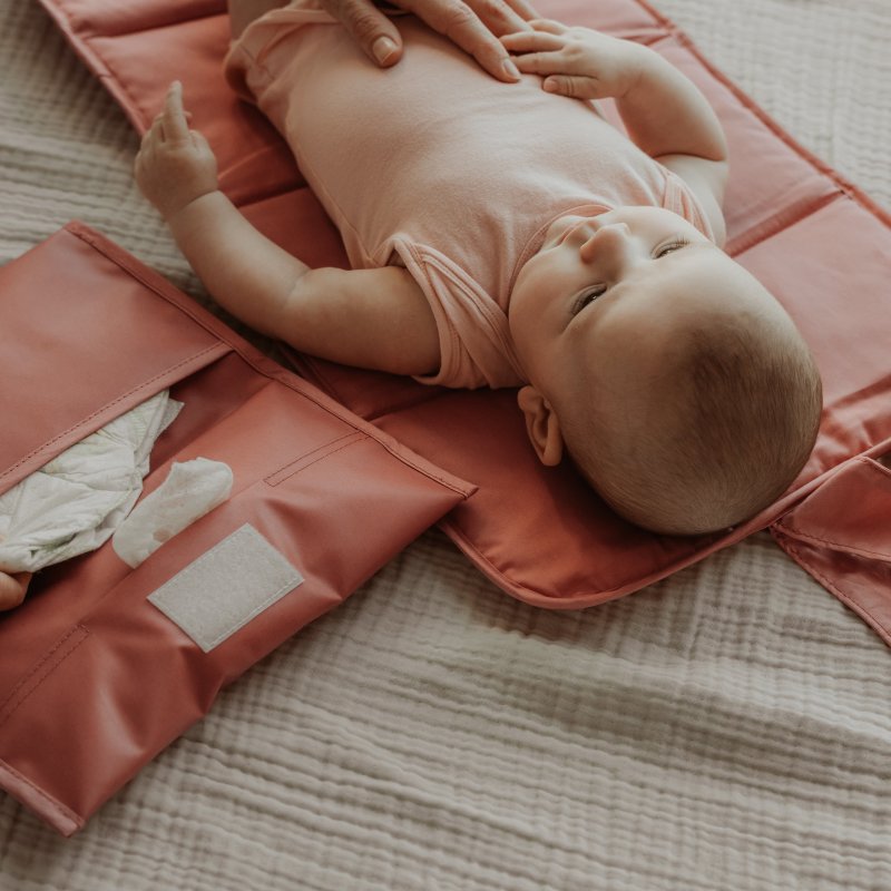 - recyklovaný polyester bez PVC - nepropustná strana, vhodná pro výměnu hodně zašpiněné plenky; dle potřeby ji lze otírat vlhkým hadříkem
