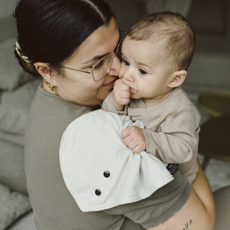 Víceúčelový bryndáček/slintáček vyrobený z mušelínu a měkkoučké, froté bavlny.