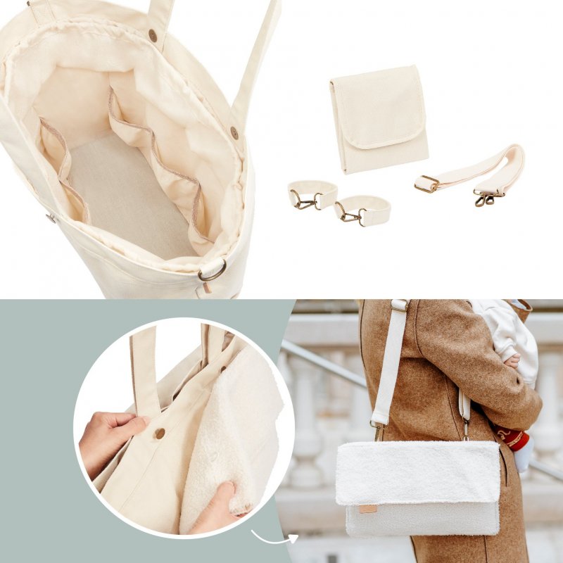 - příslušenství: přebalovací podložka, pásky na kočárek, ramenní popruhy a odnímatelné pouzdro
