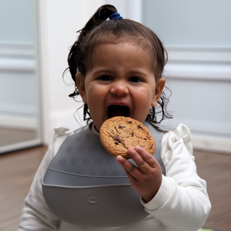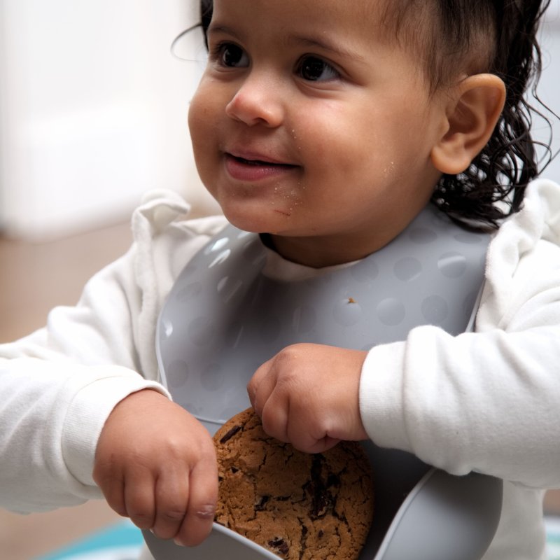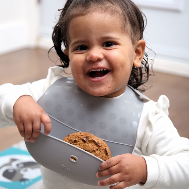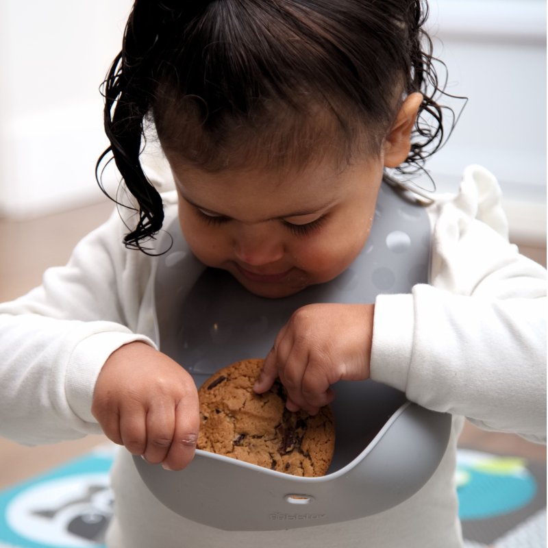 Kompaktní a lehká sada 2 silikonových bryndáčků se lžičkou. Díky hygienickému uschování je tento bryndáček ideální na krmení na procházce, dovolené apod.