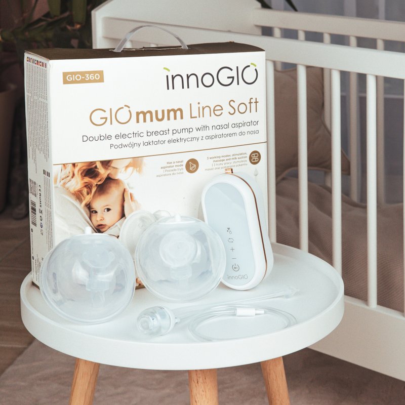 Odsávačka mateřského mléka GIOmum Line Soft je inovativní zařízení vytvořené pro maminky, které oceňují pohodlí, mobilitu a efektivitu. Díky dvojitému designu lze současně odsávat mléko z obou prsou, což zkracuje dobu potřebnou k laktaci. Přístroj je vybaven elektrickou nosní odsávačkou, která rychle a efektivně vyčistí nos dítěte a zajišťuje mu volné dýchání.