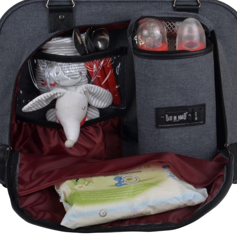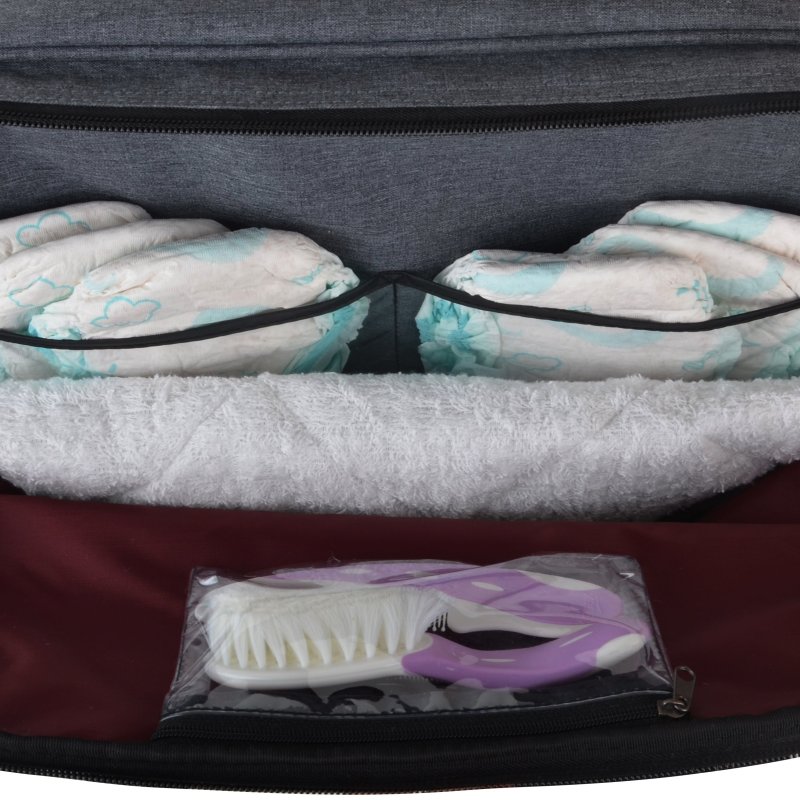 - funkční taška s mnoha přihrádkami a praktickými doplňky pro rodiče na cestách