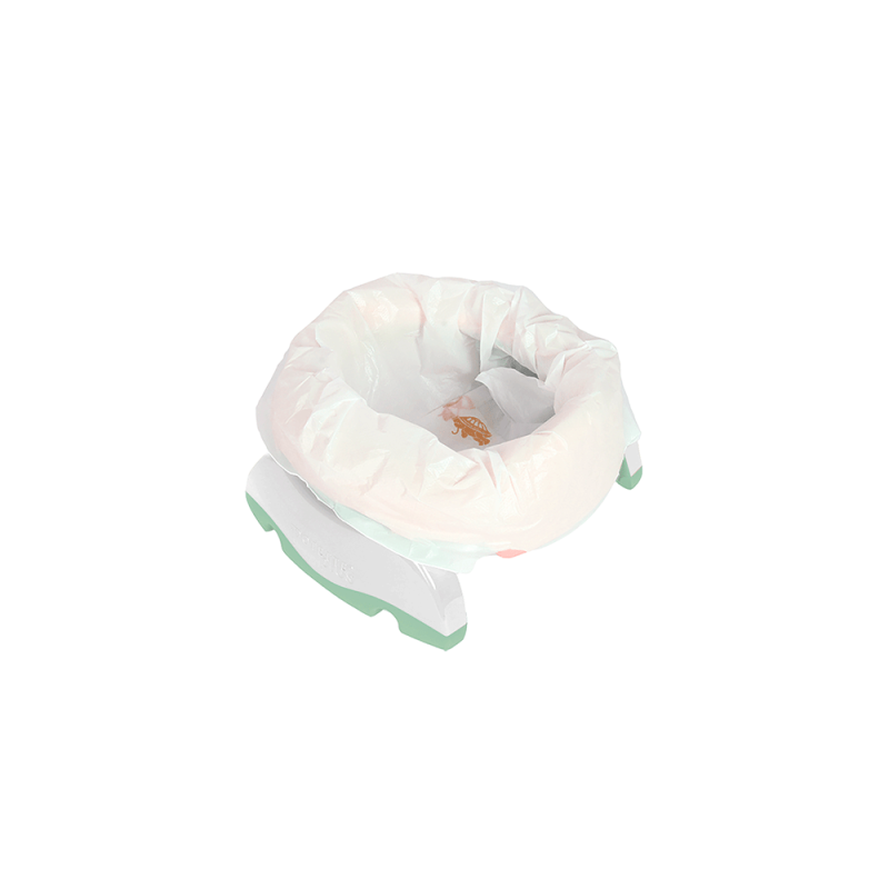 Před použitím odstraňte obal a uchovávejte jej mimo dosahu dětí. Při používání nočníku na dítě vždy dohlížejte. Nikdy nenechávejte dítě bez dozoru. Výrobek není hračka. Plastové sáčky mohou být nebezpečné. Aby se zabránilo riziku udušení, musí být úložný vak i sáčky umístěny mimo dosah dítěte.