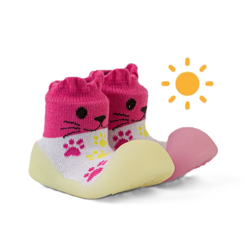 Ponožkové botičky Chameleon byly navrženy s jediným cílem: spojit zdravý vývoj chodidla s radostí a zábavou! Podporují nejen zdravý vývoj chodidla, ale také přinášejí radost a motivaci k prvním krůčkům díky své schopnosti měnit barvy! Chůze v těchto botičkách dopřává dostatek prostoru pro prstíky a umožňuje neustálý kontakt se zemí. Volná špička podporuje správný vývoj chůze a nebrání krevnímu oběhu dětské nožky. Chození v ponožkobotkách je velmi podobné přirozené chůzi naboso, což je prospěšné nejen pro nohy, ale i pro celý organismus. Botičky Chameleon mají navíc unikátní funkci změny barvy podrážky - reagují na okolní prostředí způsobem, který děti naprosto fascinuje a motivuje k pohybu a zkoumání okolního světa - při kontaktu se slunečními paprsky mění podrážka svůj barevný odstín, což vytváří pro malé objevitele kouzelný zážitek při každém krůčku.